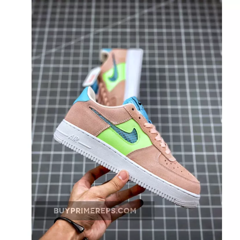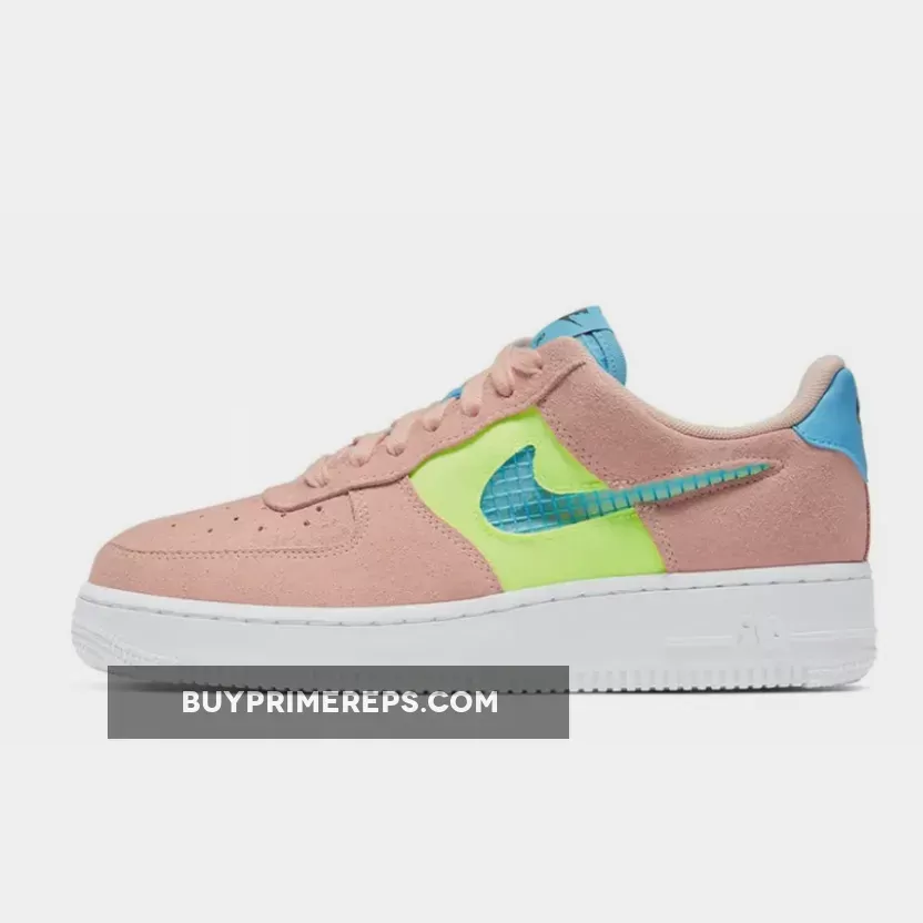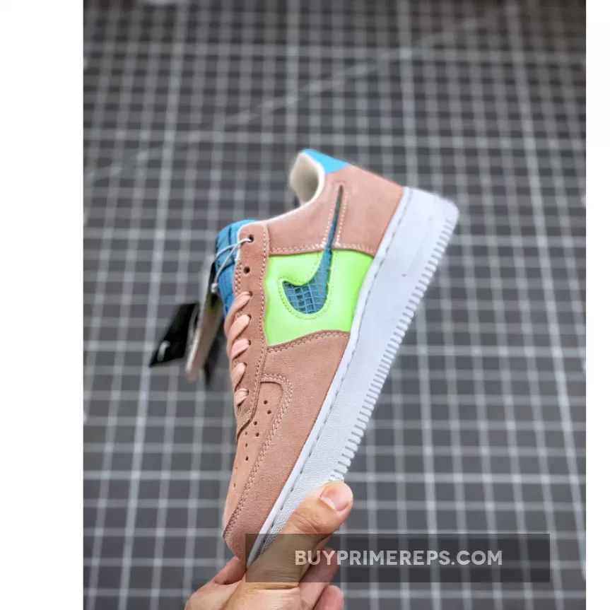 The standout feature of this Air Force 1 is the flashes of bright Ghost Green that light up the sidewalls. The suede pink and blue upper is complemented by translucent Swooshes, replacing the traditional leather overlays. This unique twist adds a touch of modernity to the classic silhouette.
