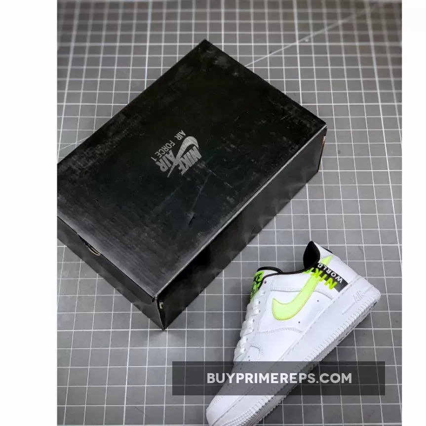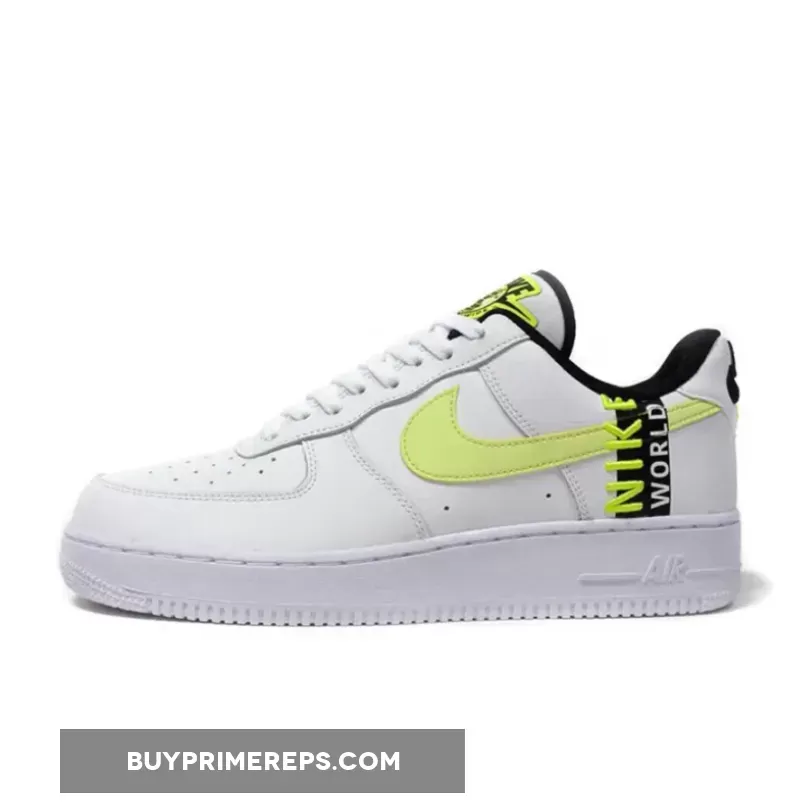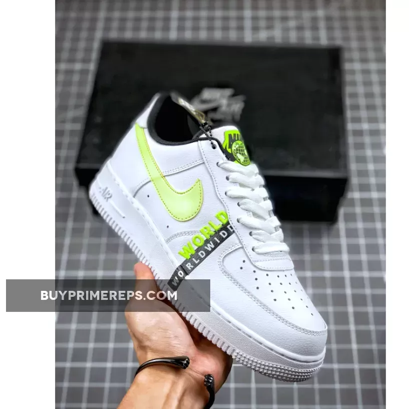 The Nike Air Force 1 Worldwide Pack White Volt is not only stylish, but it also offers comfort and support. The chunky white midsole houses Nike Air cushioning technology, ensuring a comfortable and responsive feel with every step. The perforated toe box allows for breathability, keeping your feet cool and dry throughout the day.