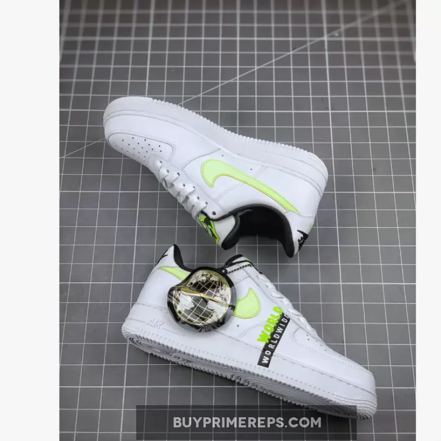 The Nike Air Force 1 Worldwide Pack White Volt is a fresh take on the iconic Air Force 1 silhouette. Part of a new collection that celebrates the global reach of the Nike brand, this sneaker features a clean white colorway with pops of volt and black for a striking look.