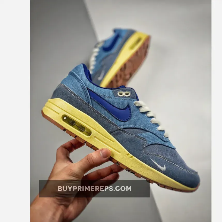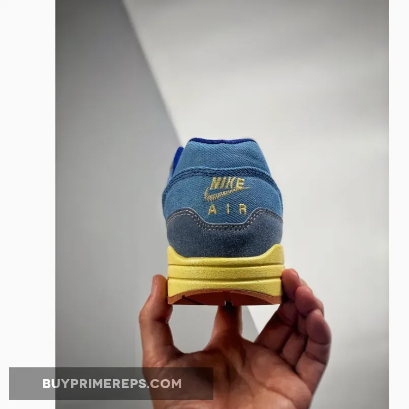 One of the standout features of the Air Max 1 Denim is the yellowed Air midsole unit. This gives the shoe a vintage aesthetic, adding to its overall charm. The midsole not only provides cushioning and support but also adds to the visual appeal of the shoe.