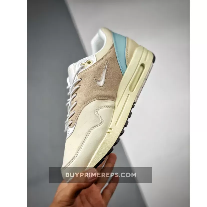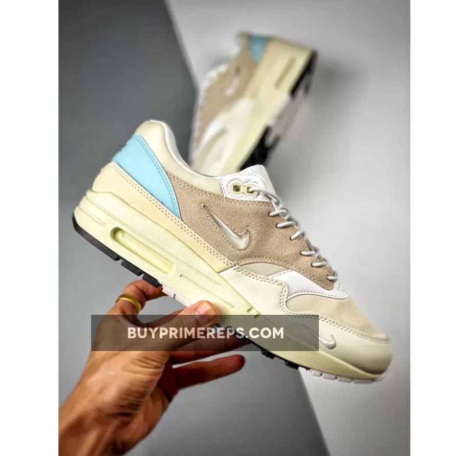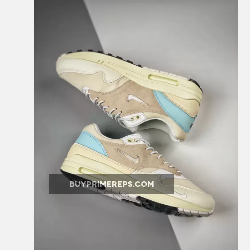 The color palette of the Air Max 1 Premium ‘Hangul Day’ is kept neutral and understated. The off-white tones create a clean and minimalist look, allowing the design details to shine. The silver metallic lace toggle adds a subtle touch of contrast, adding to the overall aesthetic appeal of the shoe.