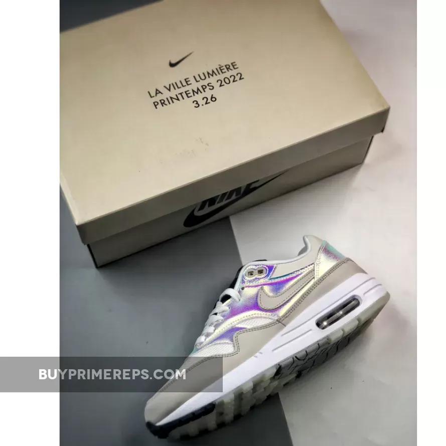 The Nike Air Max 1 La Ville Lumiere DQ9326-100 is a special edition sneaker that celebrates the 35th anniversary of the iconic Air Max 1 silhouette. This shoe pays homage to the city of Paris, also known as the “City of Light,” with its unique design elements and color scheme.