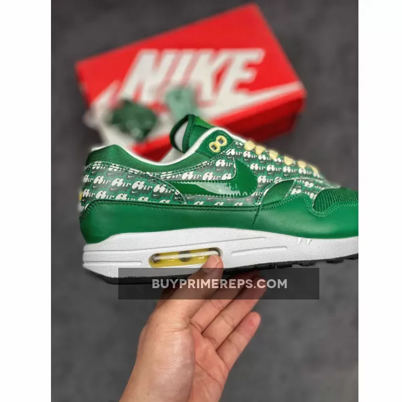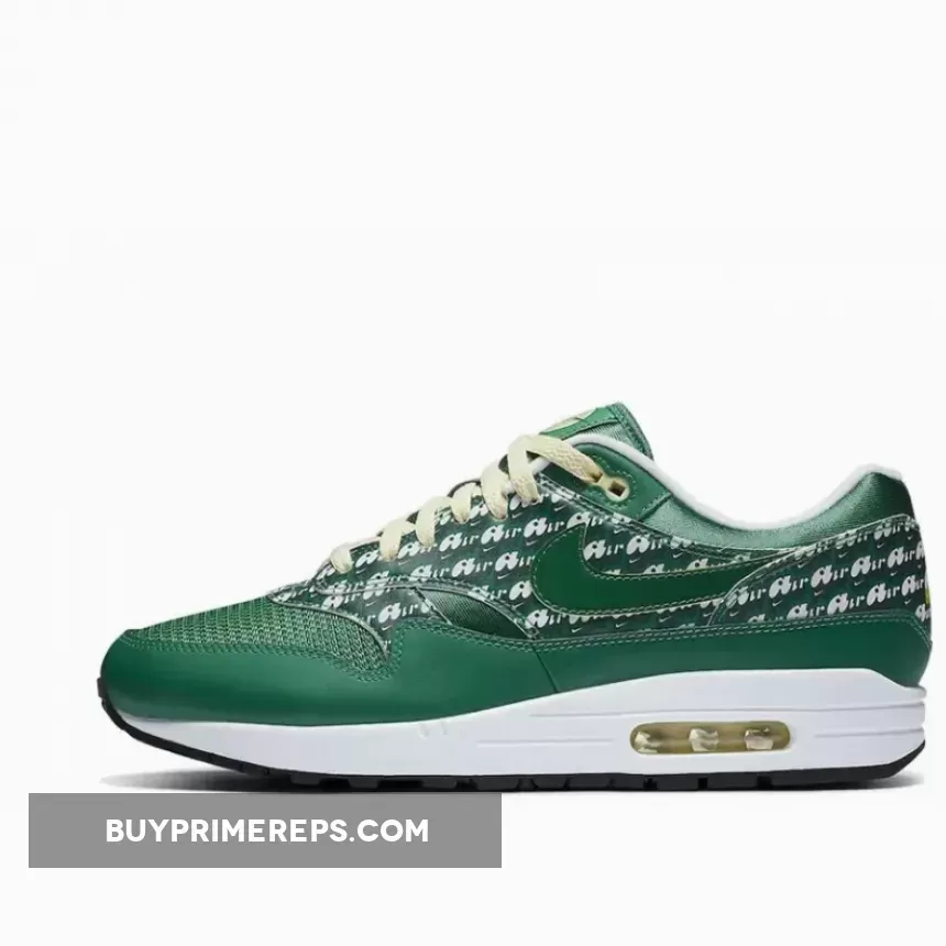 The uppers of the Air Max 1 Powerwall Limeade are crafted from a combination of leather, mesh, and synthetic materials, resulting in a well-rounded and durable design. The standout feature of this shoe is the pop art-style “Air” branding that covers the quarter panel in an allover fashion. This vintage-looking branding is a nod to the original Powerwall release and adds a unique and eye-catching element to the design.