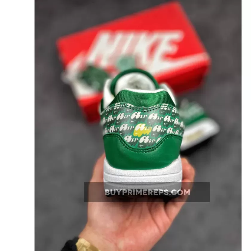 Underfoot, the Air Max 1 Powerwall Limeade features a white midsole with a black rubber outsole. The midsole showcases the timeless Tinker Hatfield design that has been popular since the Air Max 1’s debut in 1987. The visible Air unit in the heel ensures optimal comfort and cushioning, making these sneakers not only stylish but also suitable for all-day wear.