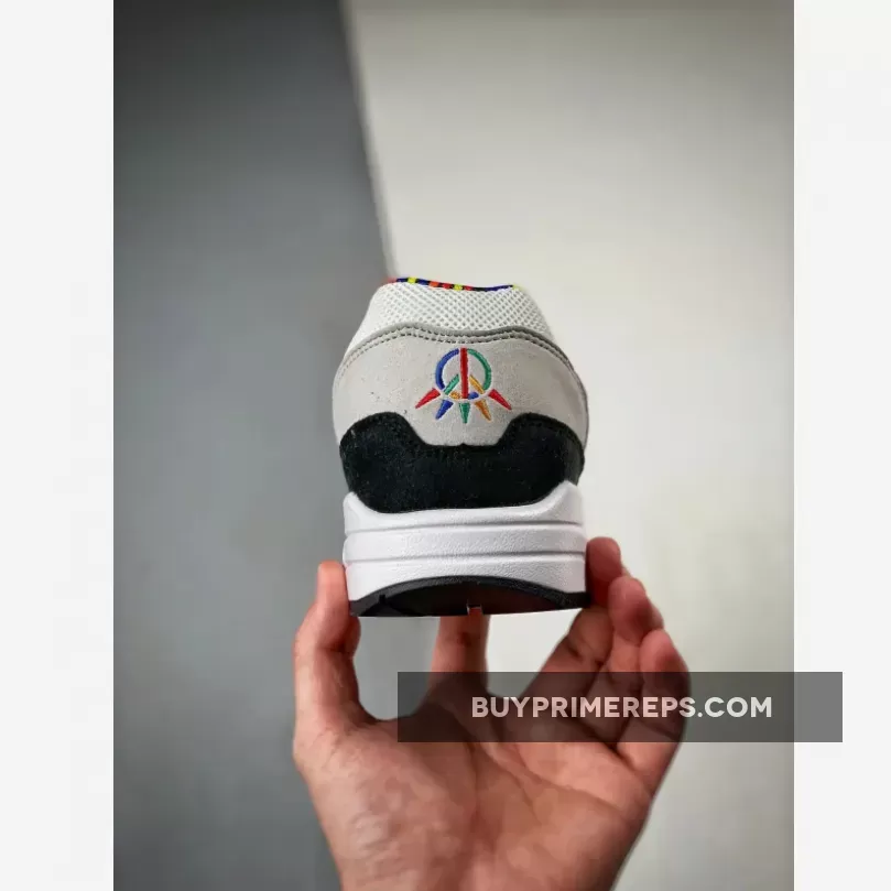 Another notable feature of the Nike Air Max 1 Live Together Play Together is the embroidered peace symbol design on the back. This detail adds a touch of positivity and unity to the sneaker, making it a perfect choice for those who value peace and harmony.