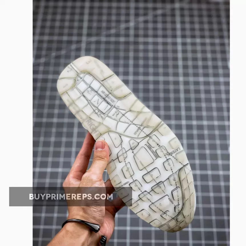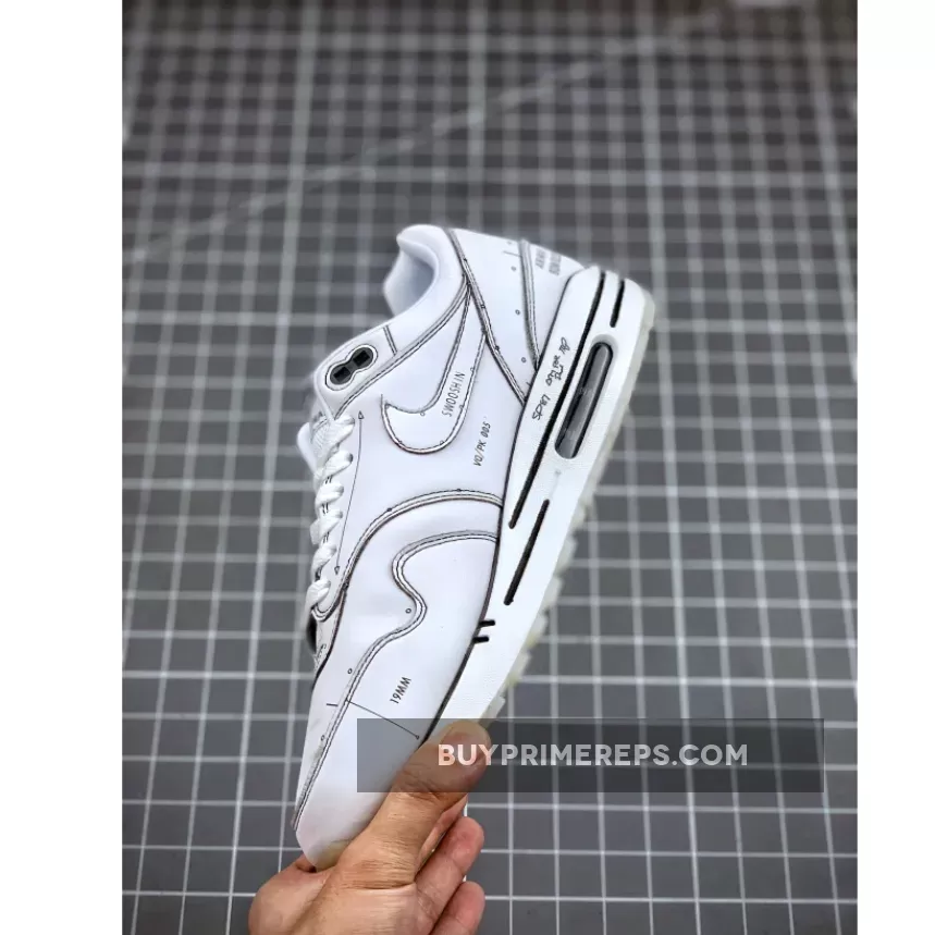 The colorway of this Air Max 1 is a clean combination of white and black, with the white serving as the base color and the black outlining and detailing adding depth and contrast to the shoe. The overall aesthetic is simple yet striking, staying true to Hatfield’s original vision.