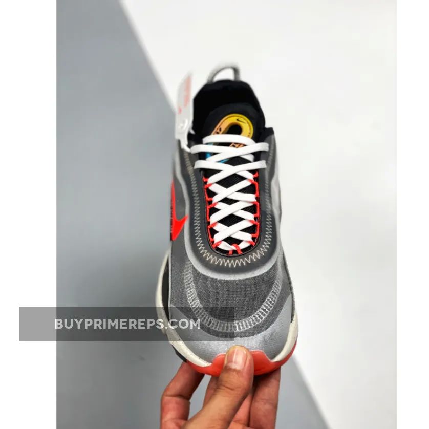 The Nike Air Max 2090 “Future is in the Air” in White/Infrared/Black/Multi-Color is a sneaker that combines futuristic design with classic Air Max elements. This special edition shoe features the phrase “Future is in the Air” on both the lateral ankle and the special hangtag, emphasizing the forward-looking nature of the design.