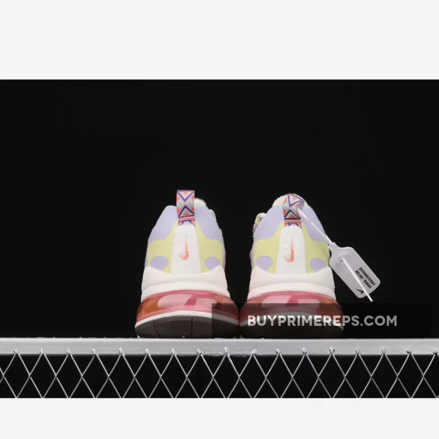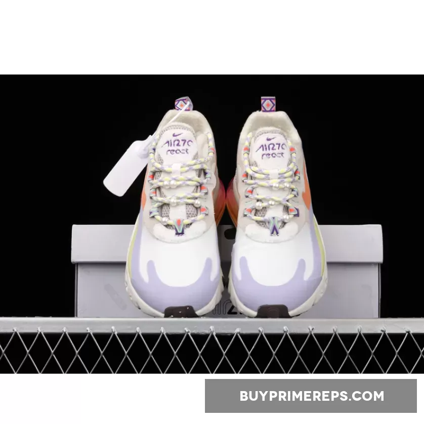 In conclusion, the Nike Air Max 270 React Cream Purple Orange is a stylish and comfortable sneaker that combines classic design with vibrant colors. With its unique details such as the pearl-adorned laces and tribal-inspired heel tab, this shoe is sure to turn heads. Whether you’re hitting the streets or running errands, these shoes will provide the perfect blend of style and comfort.