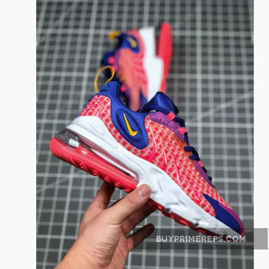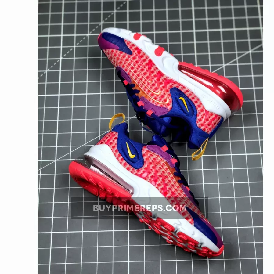 To complete the look, the Air Max 270 React ENG features a pink rubber outsole, adding a touch of playfulness and complementing the vibrant color scheme of the upper. The outsole also provides excellent traction, making it suitable for various surfaces and terrains.