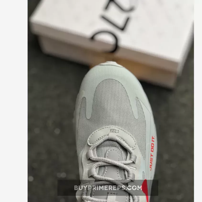 Adding to their appeal, these sneakers are adorned with Nike’s signature “Just Do It” logo on the side, as well as doubled up Swoosh logos and the “AIR270” stitched into the tongue. The light grey colorway of these sneakers ensures that they will stand out in your collection and complement any outfit you pair them with.