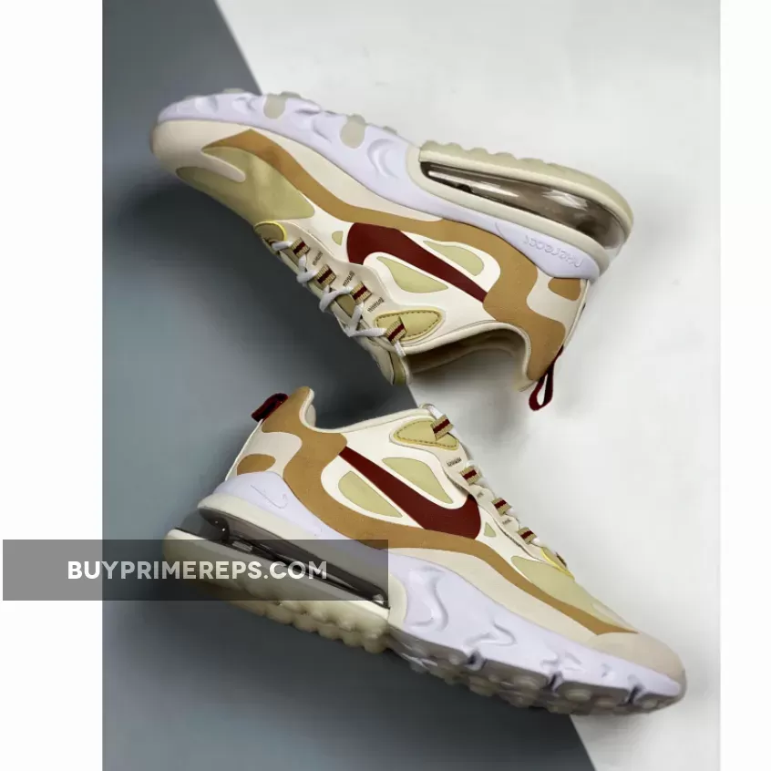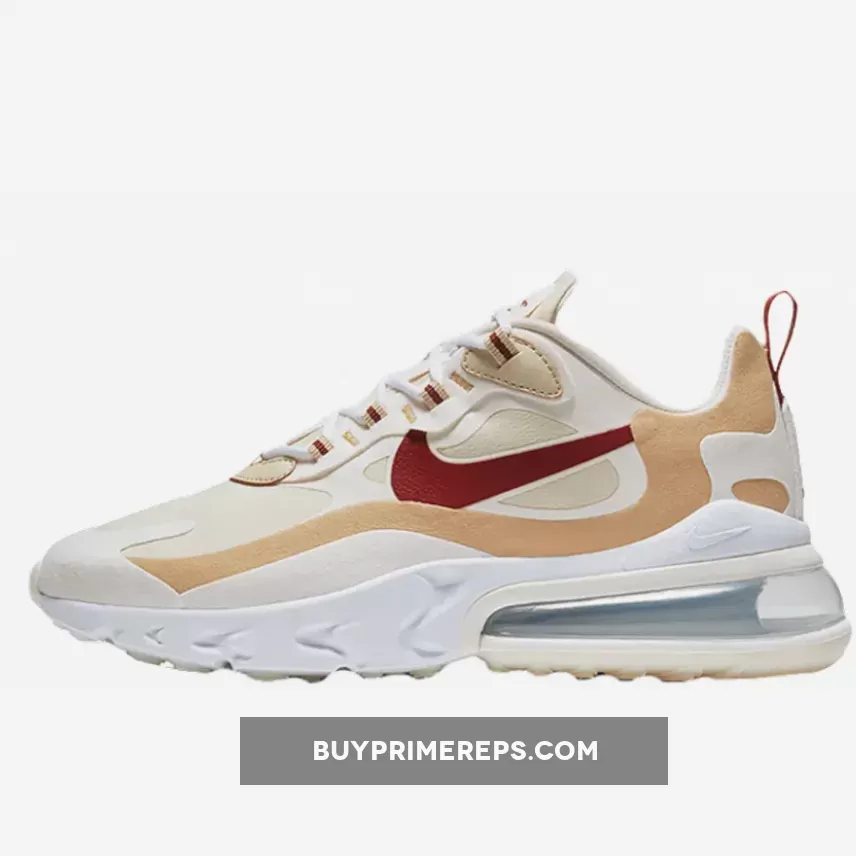 The Air Max 270 React in white, tan, and burgundy is a versatile shoe that can be easily paired with a wide range of outfits. Whether you’re rocking a casual streetwear look or dressing up for a more formal occasion, these sneakers will add a touch of style and sophistication to your ensemble.