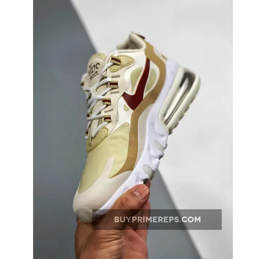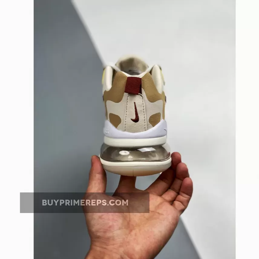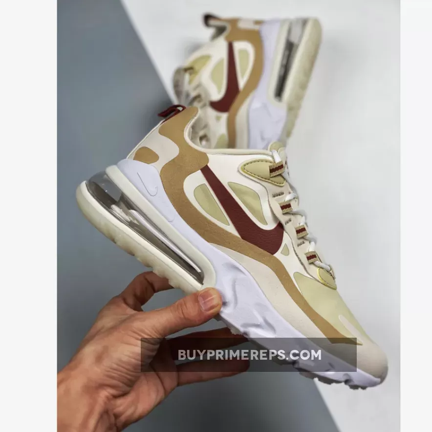 Overall, the Air Max 270 React in this new colorway offers a perfect blend of style, comfort, and performance. With its equestrian-inspired design, durable construction, and cushioned midsole, this shoe is a must-have for sneaker enthusiasts and fashion-forward individuals alike. Whether you’re a fan of the Air Max series or simply looking for a stylish and comfortable shoe, the Air Max 270 React in white, tan, and burgundy is definitely worth adding to your collection.