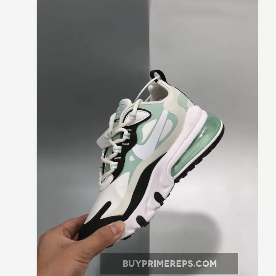 The Nike Air Max 270 React White Pistachio is a sneaker that combines style and comfort in a fresh and vibrant package. With its tonal, minty colorway, this shoe is perfect for those looking to make a statement with their footwear.