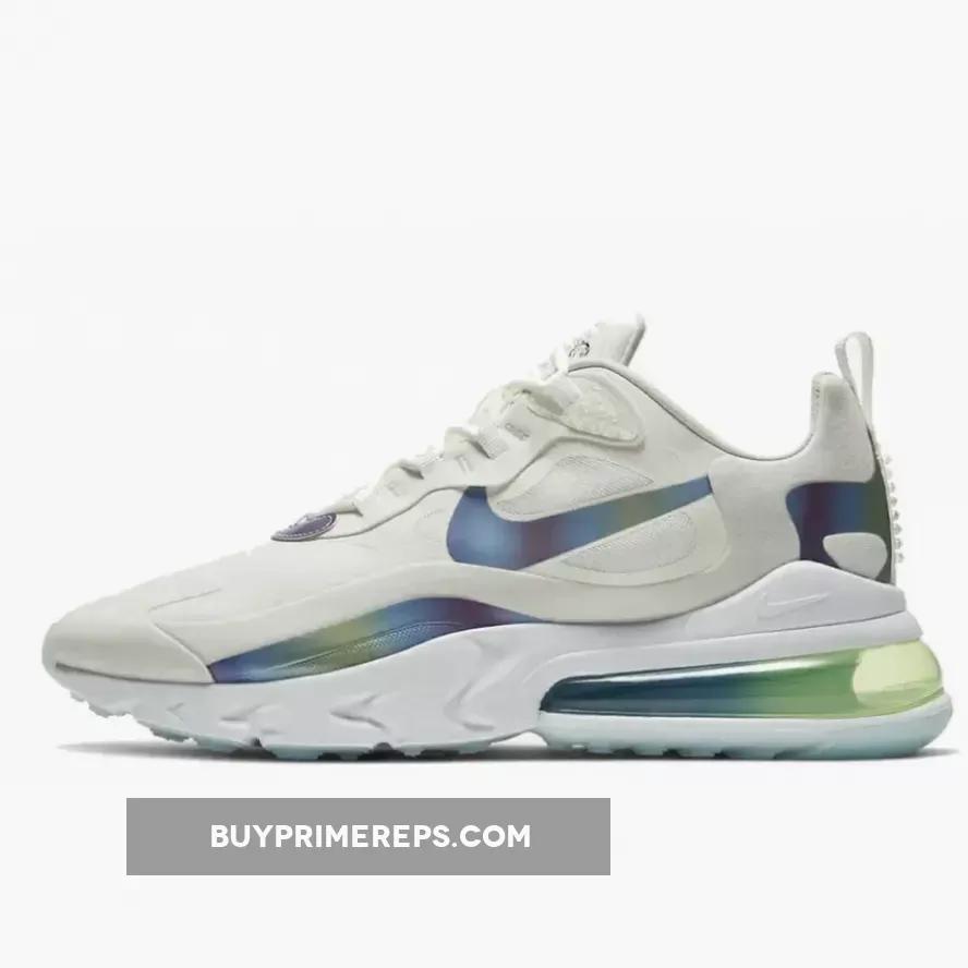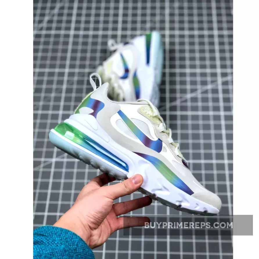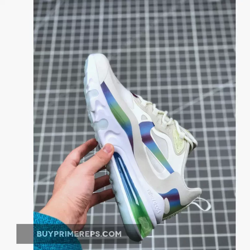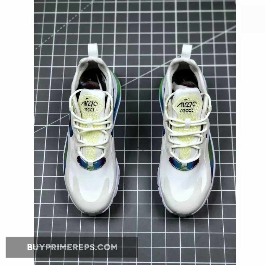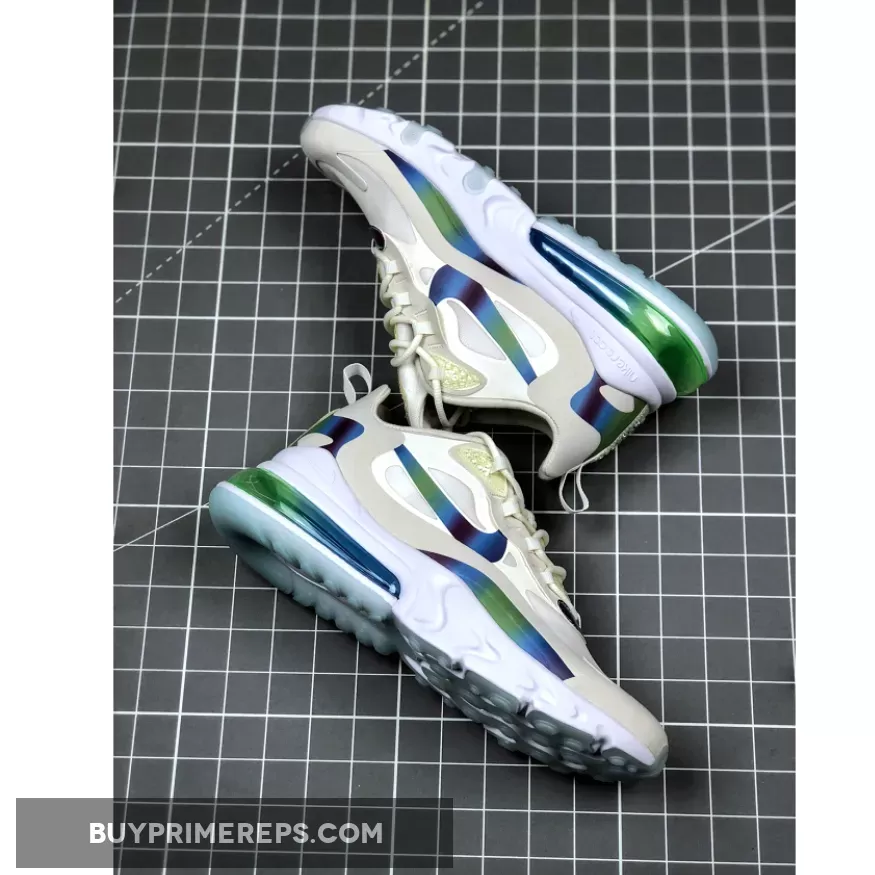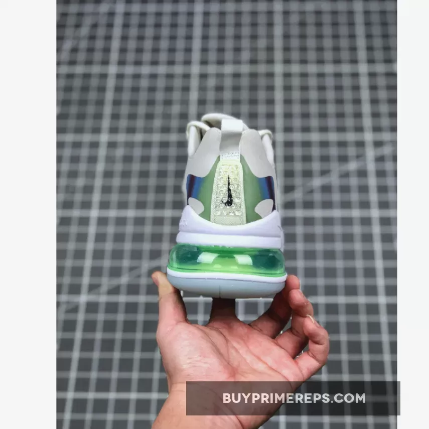 One of the standout features of the Air Max 270 React Bubble Pack White is its lightweight React foam midsole. This technology provides exceptional cushioning and responsiveness, ensuring a comfortable and supportive ride. The midsole also features a green AIR blob, adding a unique and playful element to the shoe.