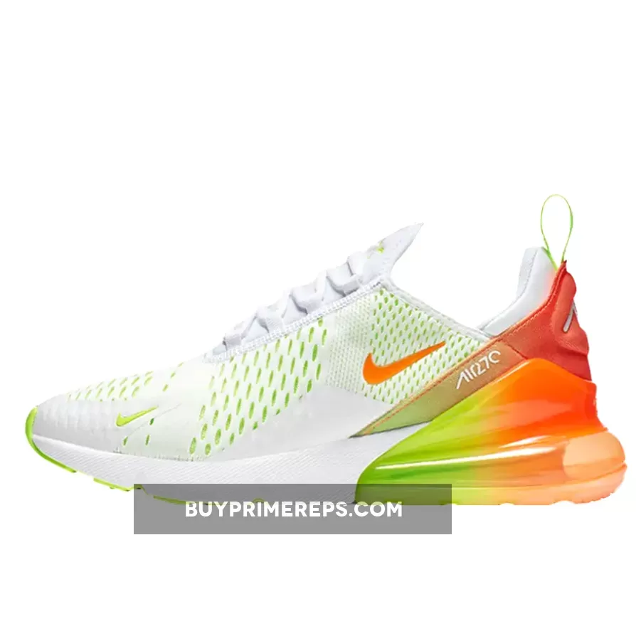 The Nike Air Max 270 Volt White is a vibrant and eye-catching sneaker that brings tropical vibes to the classic Air Max 270 silhouette. With its bold color scheme and comfortable construction, this shoe is perfect for those looking to make a statement with their footwear.