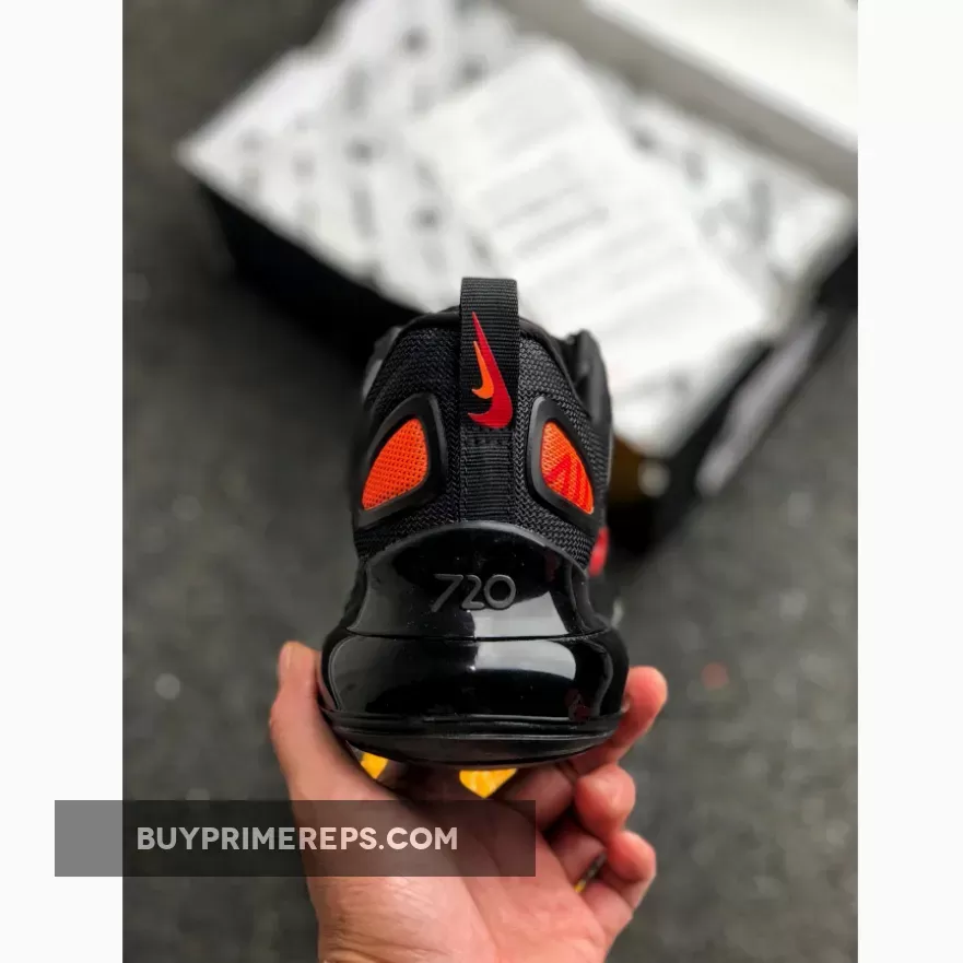 The Nike Air Max 720 By You Black also features new branding details inspired by urban landscapes. These bold hues add a unique and eye-catching element to the shoe, making it stand out from the crowd. The combination of the black base and the vibrant accents creates a striking contrast that is sure to turn heads.