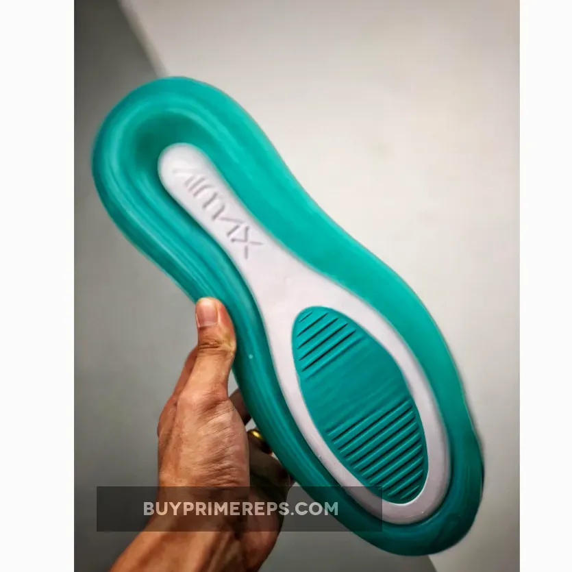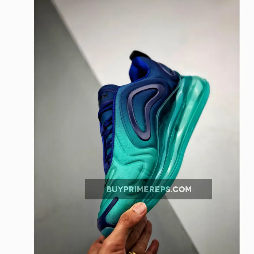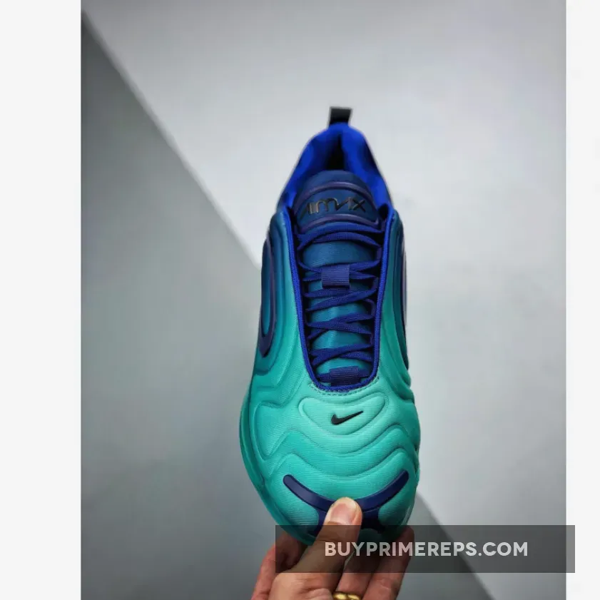 The upper of the Air Max 720 Sea Forest features a gradient design that fades from a light green on the front to a deep blue around the back. This gives the shoe a dynamic and visually appealing look. The upper is made from a perforated engineered mesh, which allows for breathability and comfort.