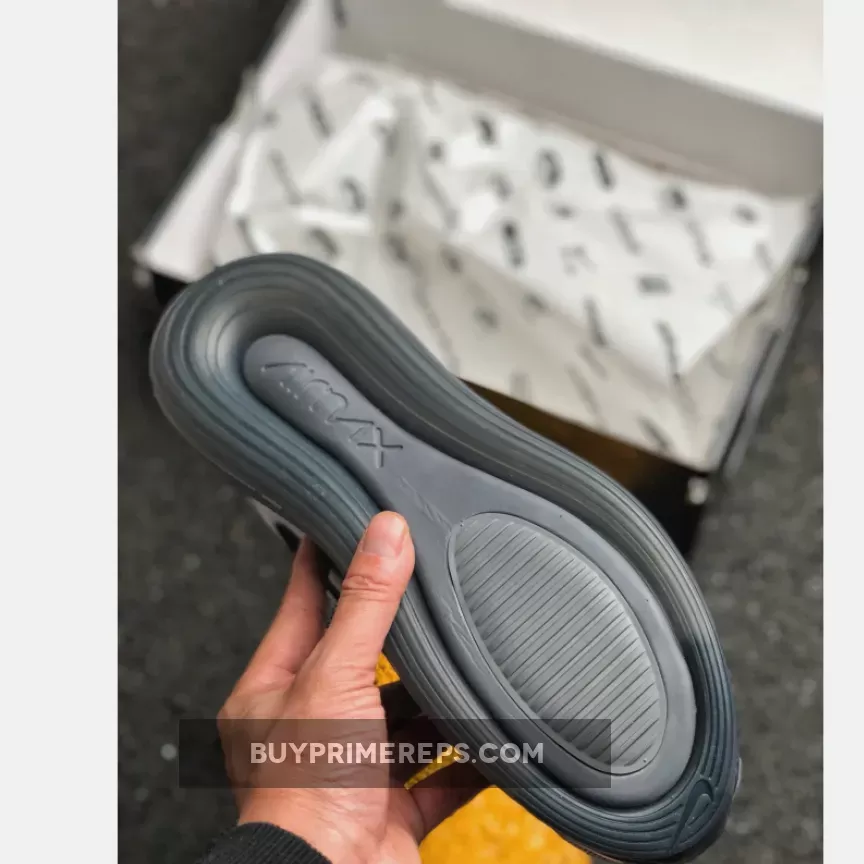 One of the standout features of the Nike Air Max 720 Wolf Grey Black is its Air Max 720 sole unit. This sole unit is made from over 70% of recycled manufactured waste, making it not only comfortable and supportive but also environmentally friendly. The smokey grey color of the Air unit adds a unique and eye-catching element to the shoe.