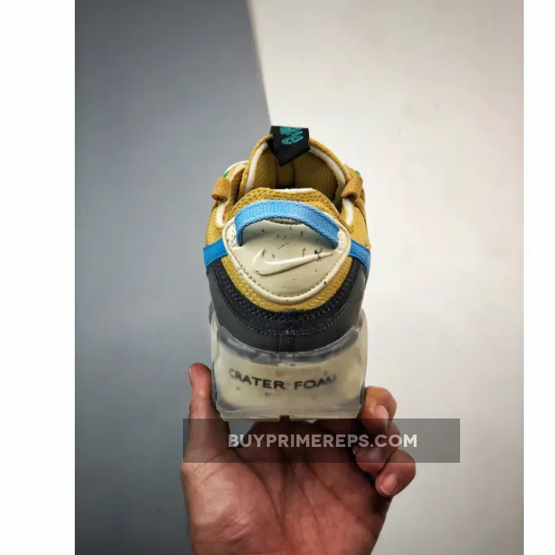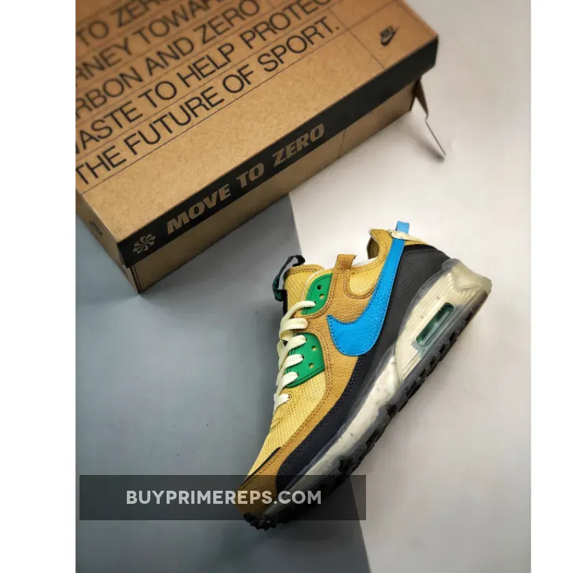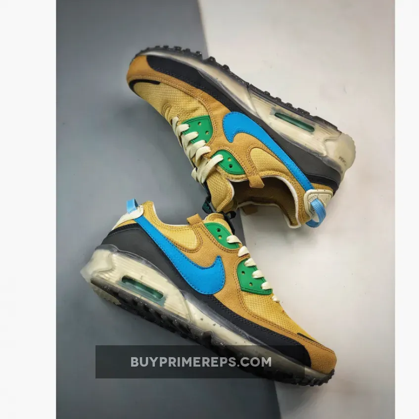 Overall, this shoe is a standout option for those who want to make a bold statement with their footwear. Its unique colourway and eco-friendly construction set it apart from other sneakers on the market. Whether you’re a sneakerhead or someone who simply appreciates a well-designed shoe, the Nike Air Max 90 Terrascape Wheat Gold Blue is a great choice.