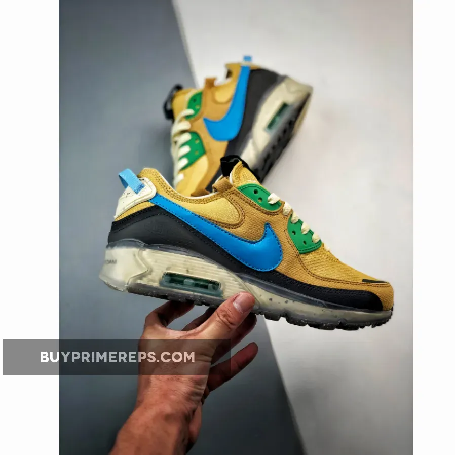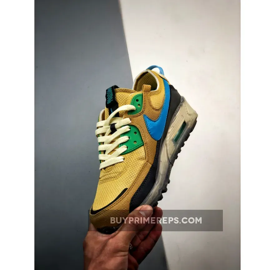 The Nike Air Max 90 Terrascape Wheat Gold Blue is a striking and vibrant shoe that will surely brighten up your shoe collection. With its bold colourway and comfortable build, it is a great choice for both style and comfort.