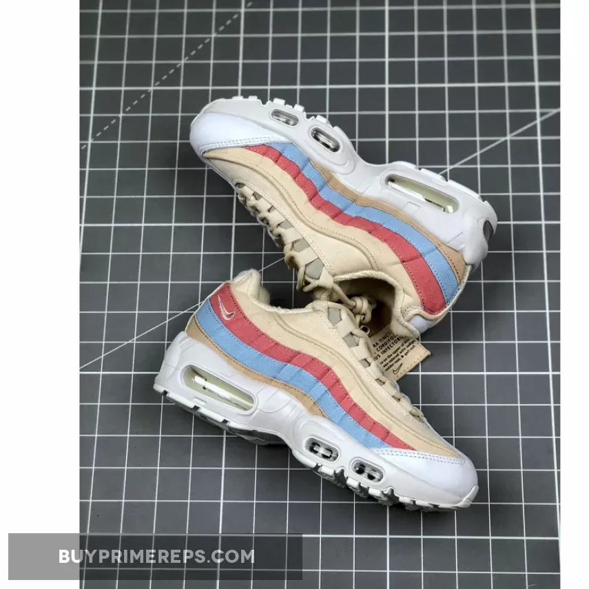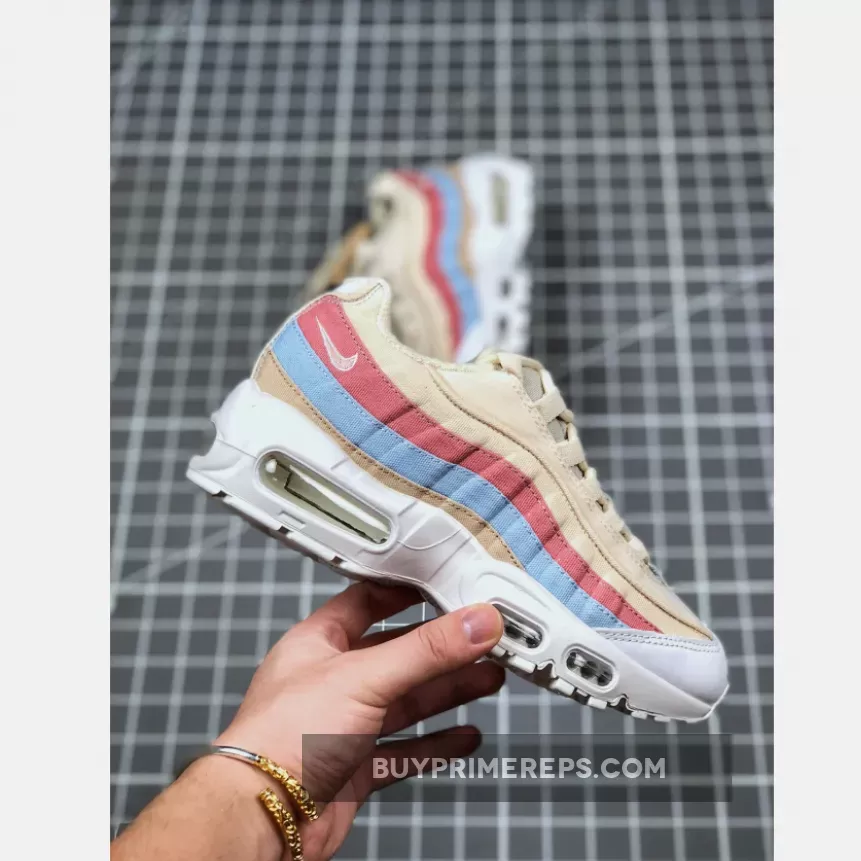 The Nike Air Max 95 Plant Color Pack Coral Stardust features a clean and fresh pastel palette, perfect for the upcoming spring season. The upper is constructed with a canvas material, giving it a unique texture and adding to its overall aesthetic appeal. The terry cloth-like interior lining provides a comfortable fit, ensuring that wearers can enjoy their sneakers all day long.