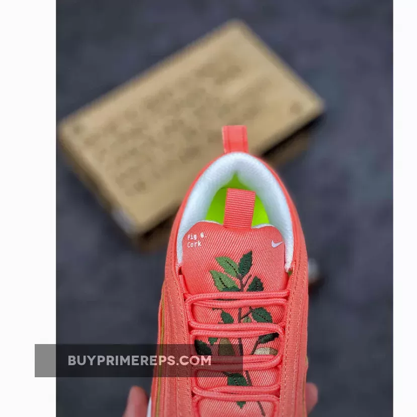 Overall, the Nike Air Max 97 Cork Pink is a standout sneaker that combines style, sustainability, and performance. Its vibrant coral colorway, unique cork plant detailing, and use of recycled materials make it a must-have for environmentally-conscious sneaker enthusiasts. Whether you’re a fan of the Air Max 97 silhouette or simply appreciate the blend of fashion and sustainability, this shoe is sure to make a statement. Don’t miss out on this one-of-a-kind release and add the Nike Air Max 97 Cork Pink to your collection today.