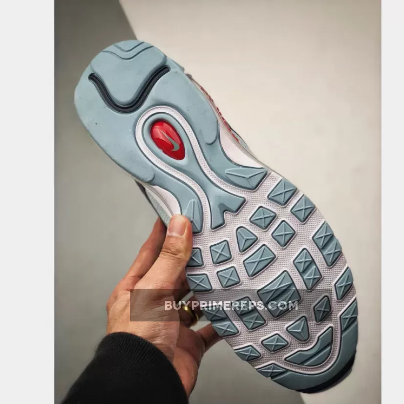 One of the standout features of the Air Max 97 Ocean Bliss is the branding details. The number “97” is prominently displayed on the tongue, insole, and “Air Max” is printed on the signature sole unit. These red accents not only add visual interest but also pay homage to the model’s heritage.