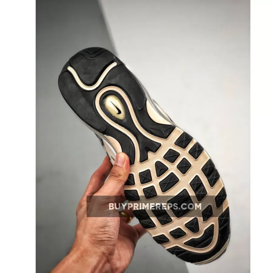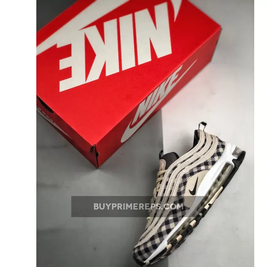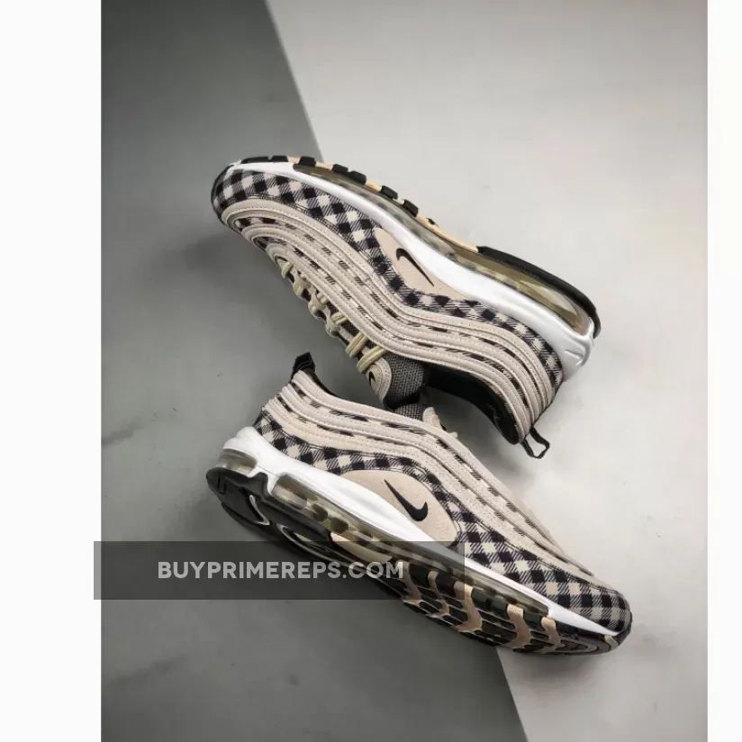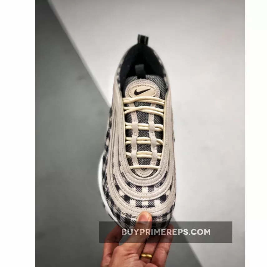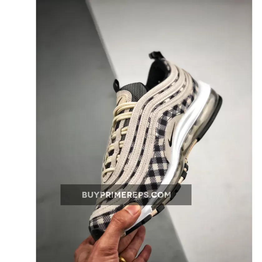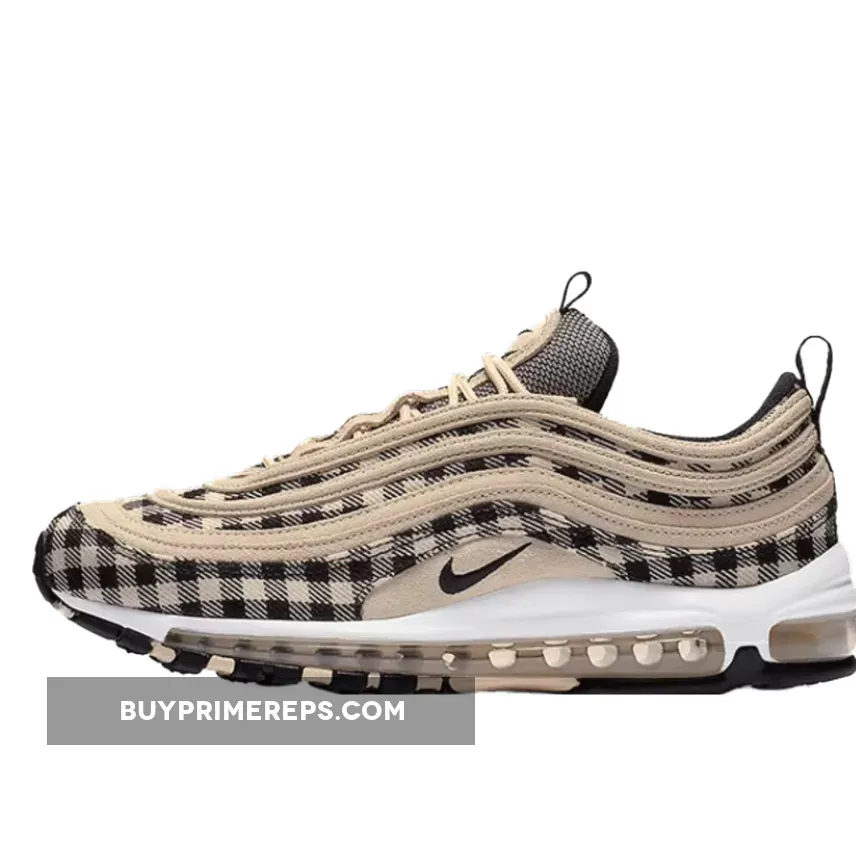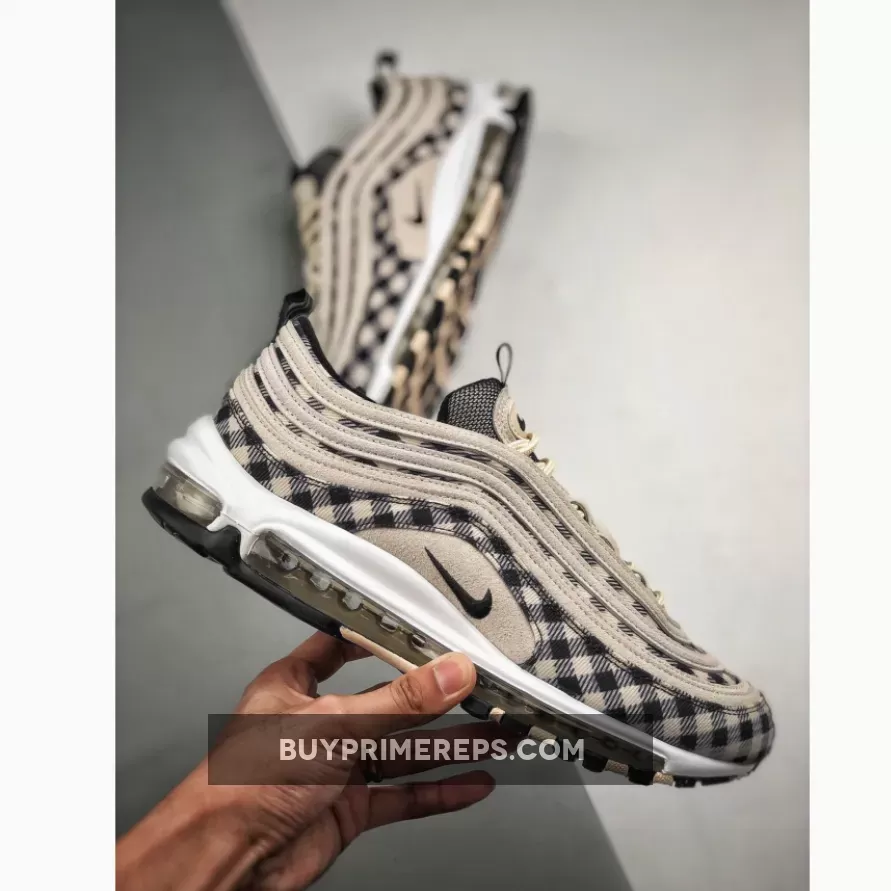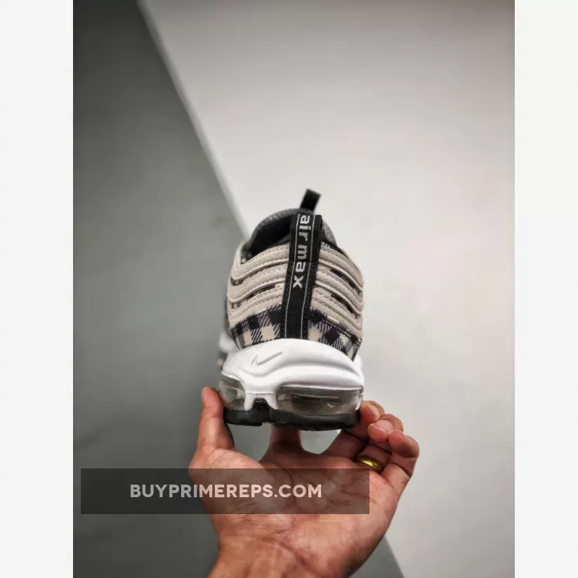The standout feature of the Air Max 97 Plaid Light Cream is the flannel-inspired upper, which gives the shoe a unique and fashionable twist. The entire upper is adorned with a beige and black plaid pattern, reminiscent of classic flannel shirts. This not only adds a touch of style but also provides a cozy and comfortable feel.