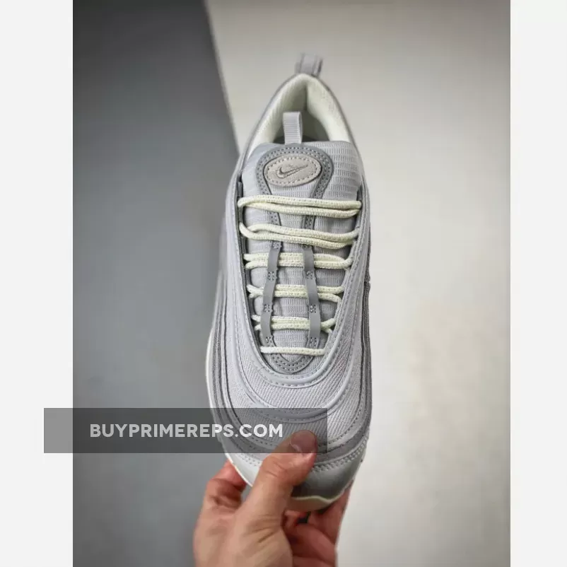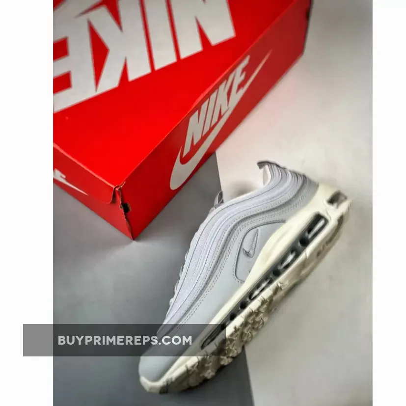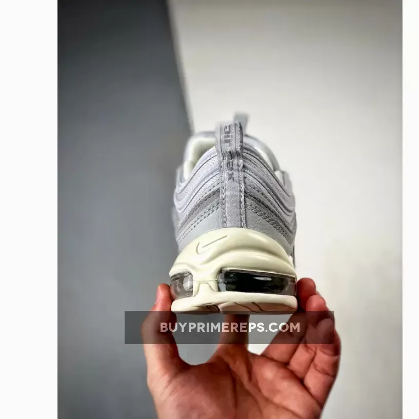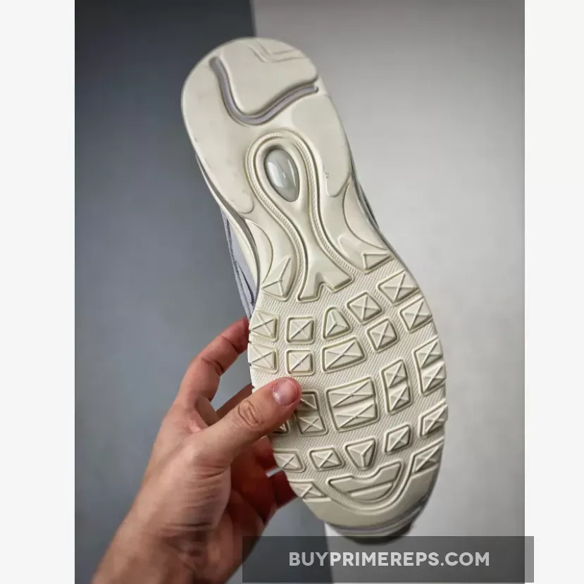 The midsole of the Nike Air Max 97 “Grey Sail” is a crisp sail color, providing a clean and cohesive look. It features a full-length exposed Air unit, offering superior cushioning and comfort. The white rubber outsole completes the design, providing traction and durability for everyday wear.