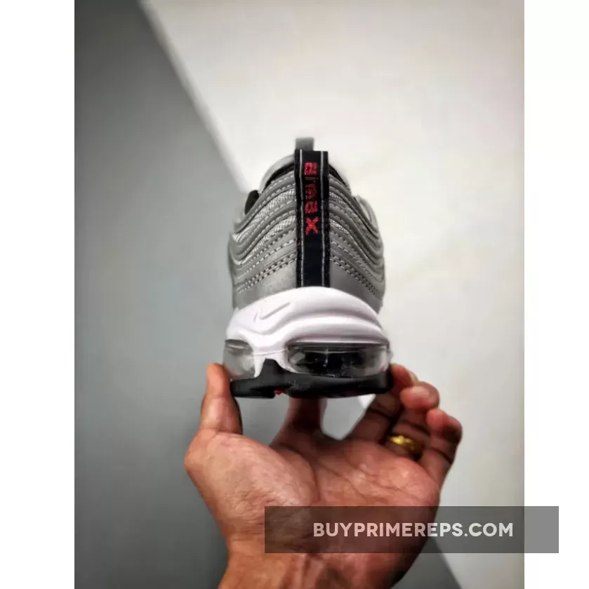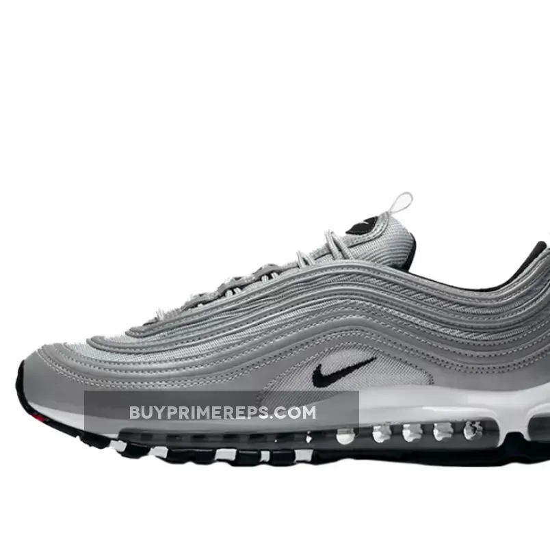 Comfort is a priority with the Nike Air Max 97 Reflect Silver, as it features a full-length silver Air Max cushioning unit. This technology provides optimal cushioning and support, making it perfect for all-day wear. The black rubber outsole ensures durability and traction, allowing you to confidently stride through any terrain.