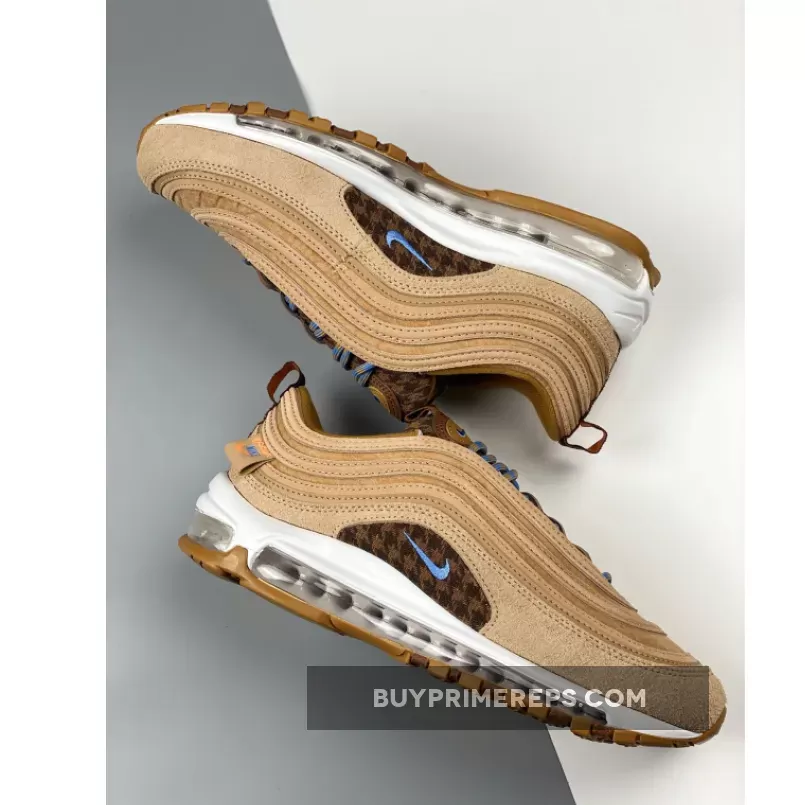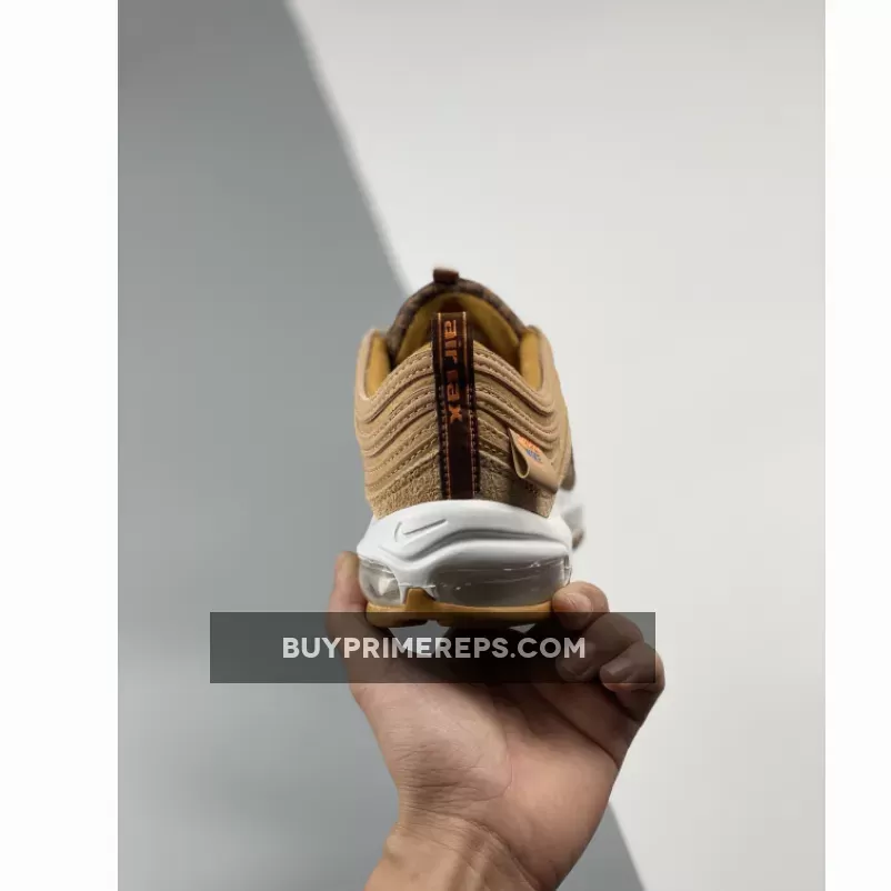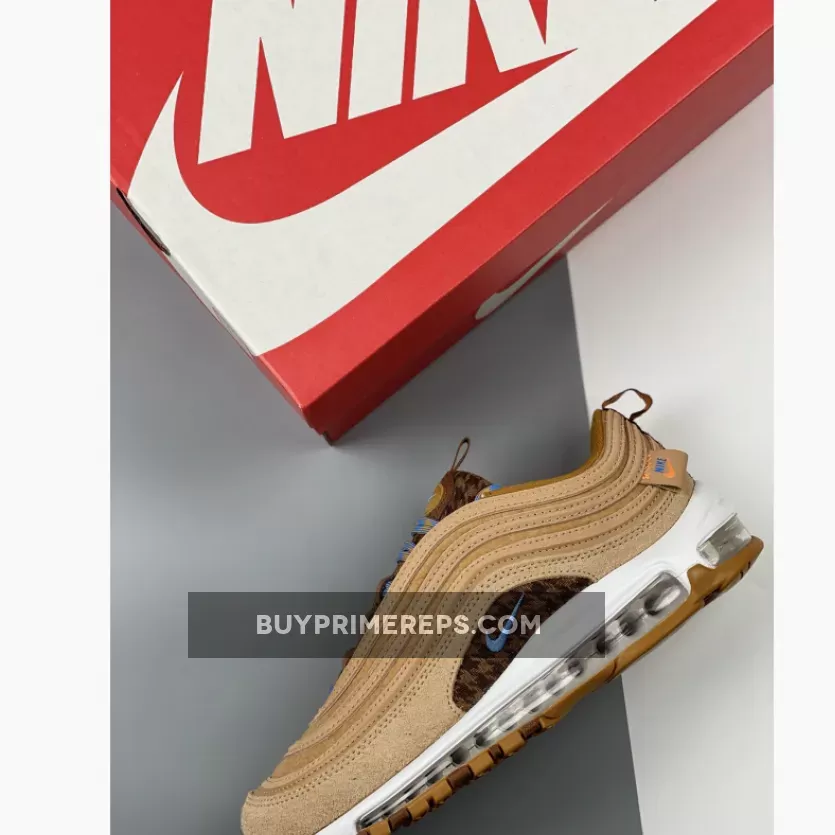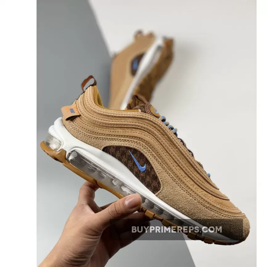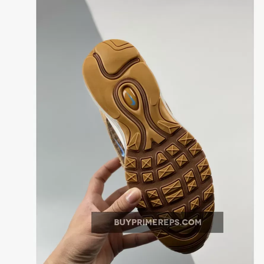 The Nike Air Max 97 Teddy Bear is not only stylish but also comfortable. The shoe features a moulded white midsole that houses a full-length Air unit, providing excellent cushioning and support for all-day wear. The brown-and-tan rubber outsole completes the look, adding durability and traction to the design.