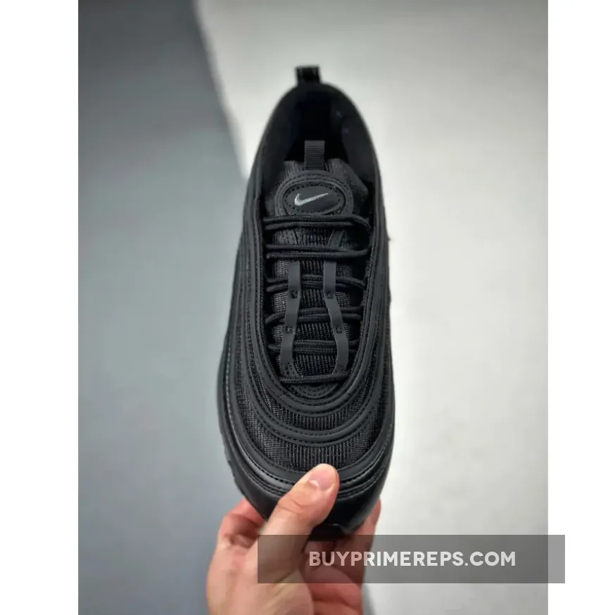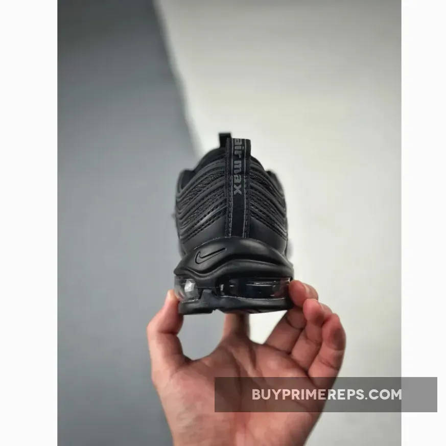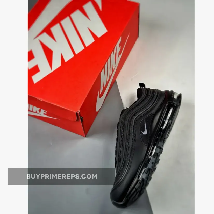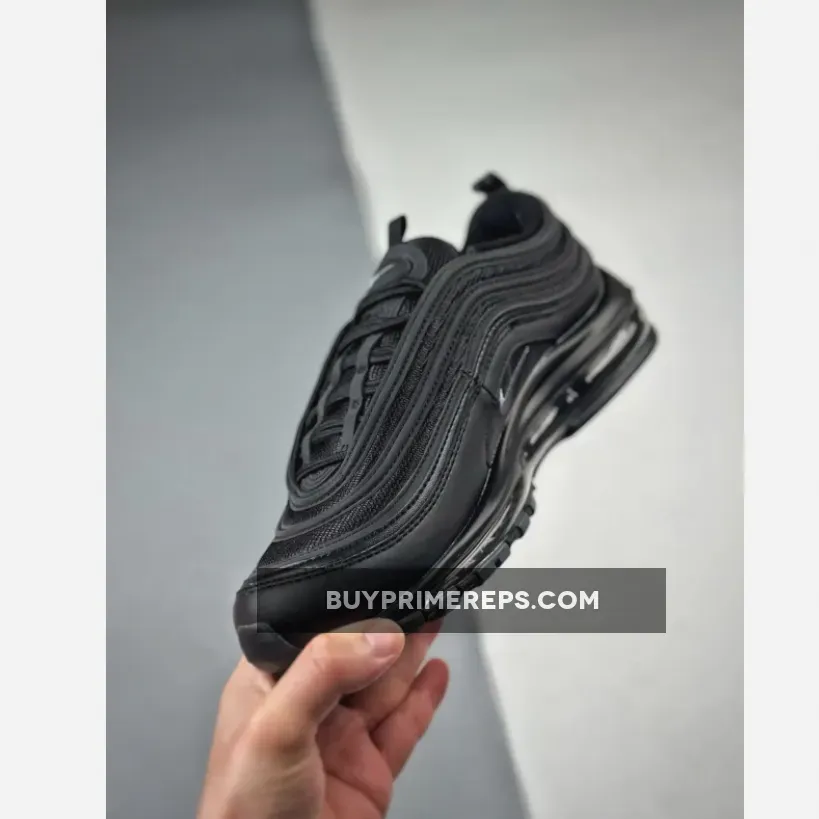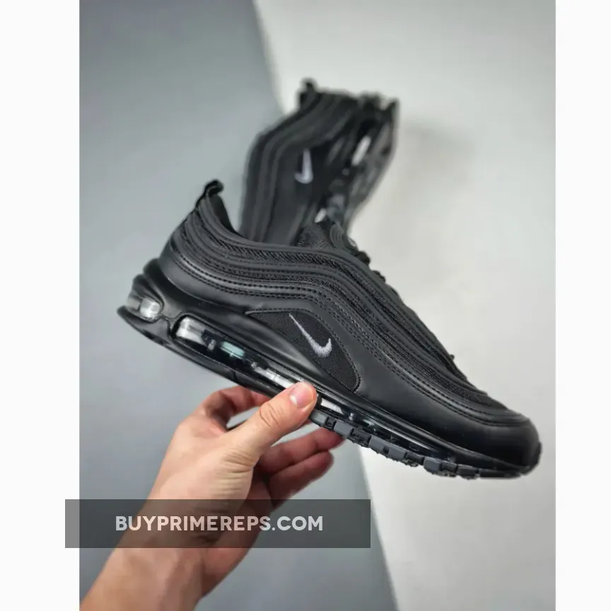 The Triple Black Womens edition features a monochromatic black colorway that is sure to turn heads. The entire shoe, from the upper to the midsole, is covered in this dark hue, creating a sleek and sophisticated look. The upper is constructed with a combination of leather and soft nylon, providing durability and comfort. The iconic wave-like pattern that is synonymous with the Air Max 97 is present on the upper, giving the shoe its unique and eye-catching design.