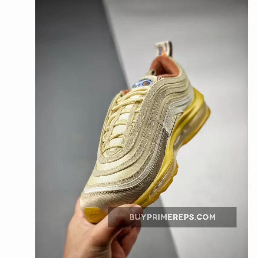 The upper of the Nike Air Max 97 Retro Tan Gum features a combination of canvas, suede, and mesh in a tan and gum colorway. This combination of materials gives the shoe a premium look and feel, while also providing durability and breathability. The tan and gum color palette adds a vintage touch to the shoe, giving it a timeless appeal.