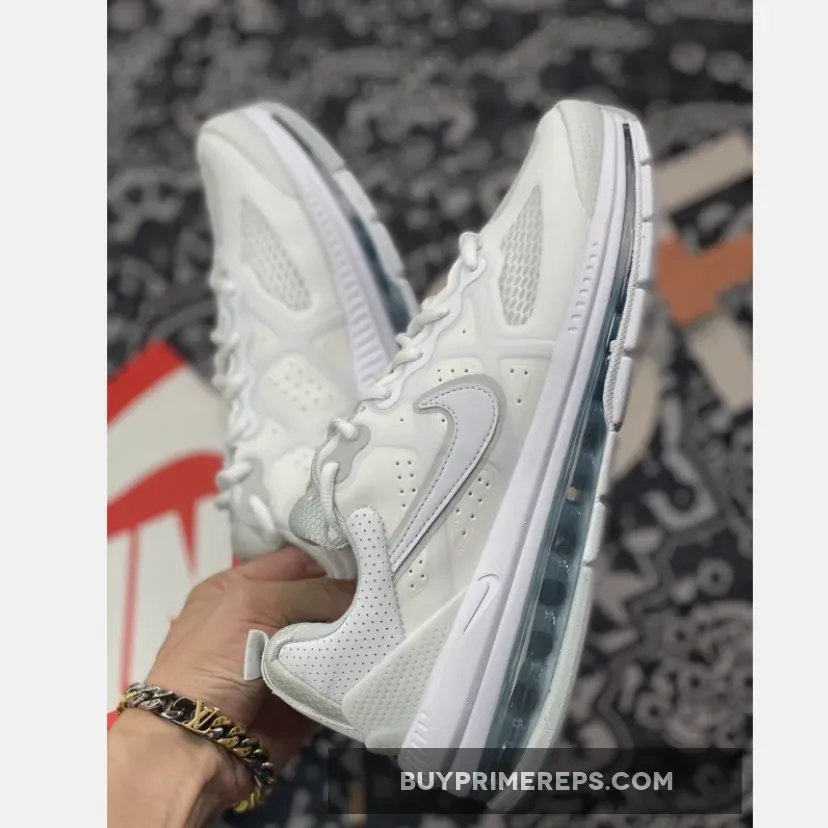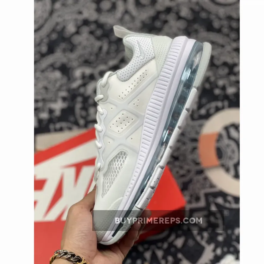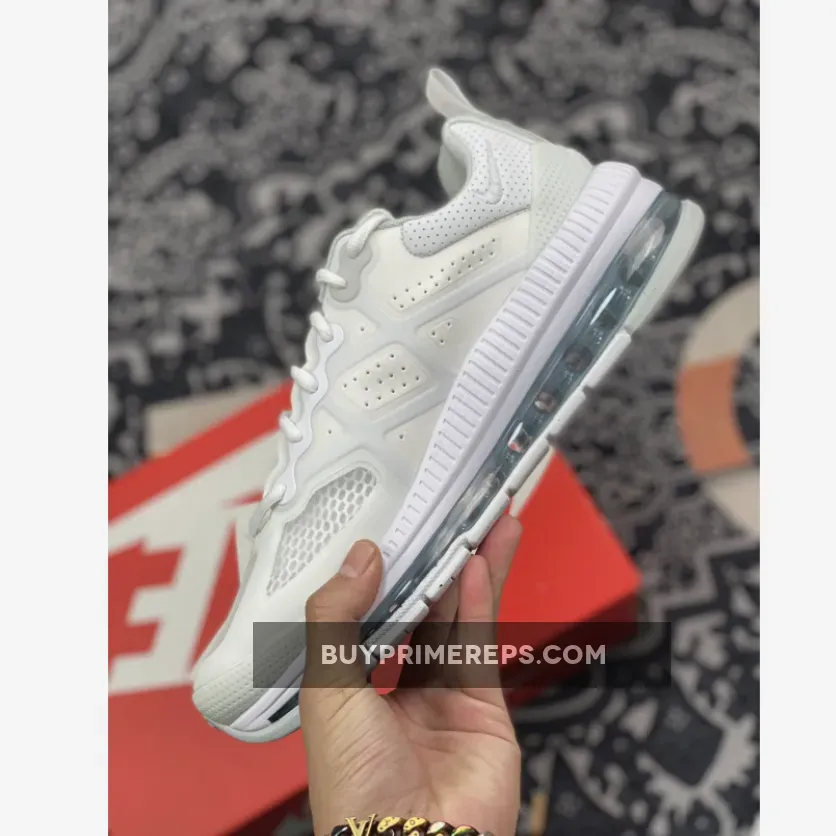 The all-white upper of the Nike Air Max Genome is a true standout feature of this shoe. The pristine white colorway gives the sneaker a fresh and crisp appearance, making it a versatile option that can be paired with a variety of outfits. To add a touch of contrast, subtle grey accents are strategically placed throughout the shoe, adding depth and dimension to the overall design.