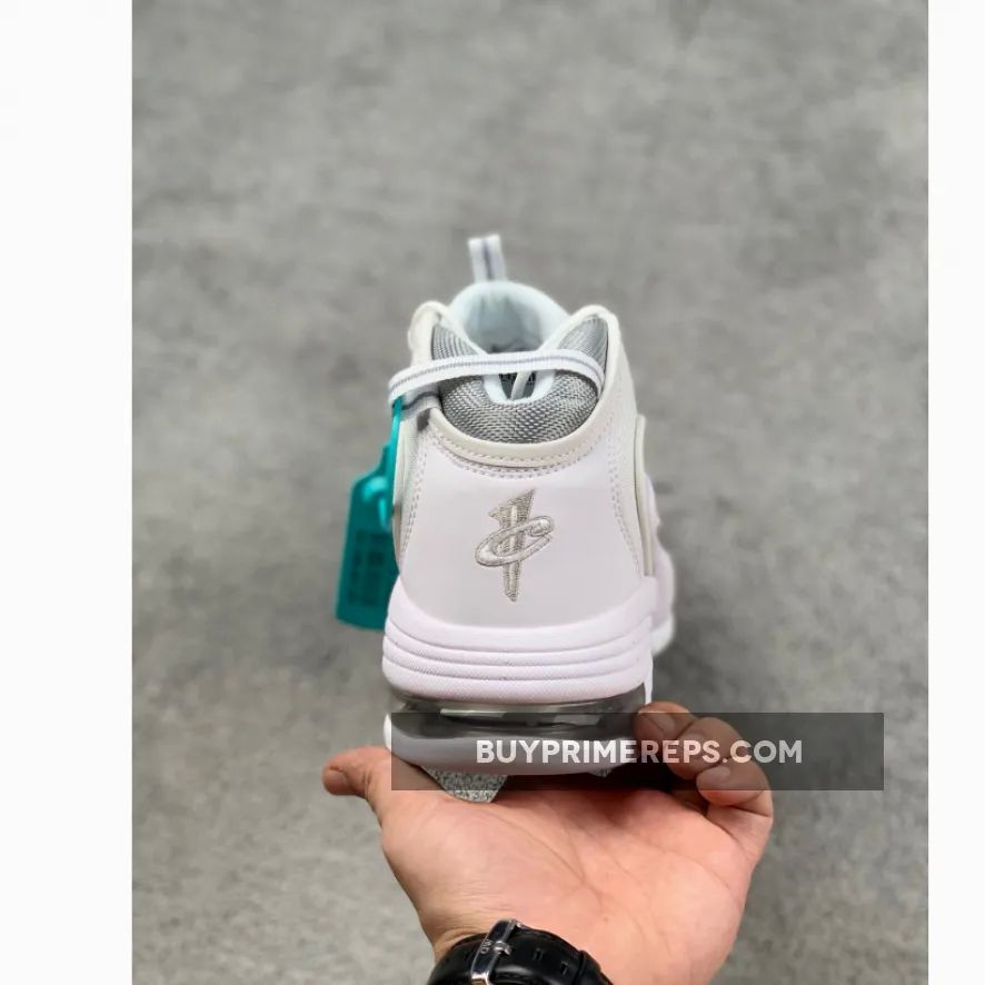 The Air Max Penny 1 White Metallic is dressed in an ultra-clean ‘White Metallic’ color scheme, featuring a pristine white upper that exudes a sleek and timeless aesthetic. Adding a touch of elegance, metallic silver accents can be found on the iconic Swoosh and the 1 Cent heel logo, elevating the shoe’s overall design.