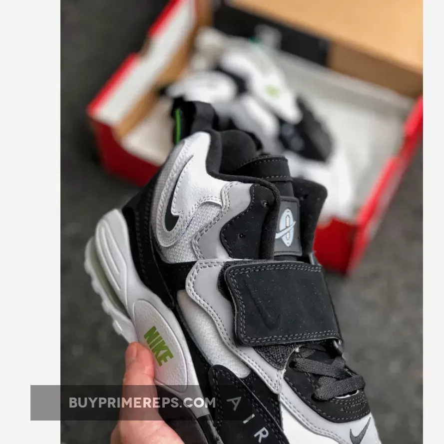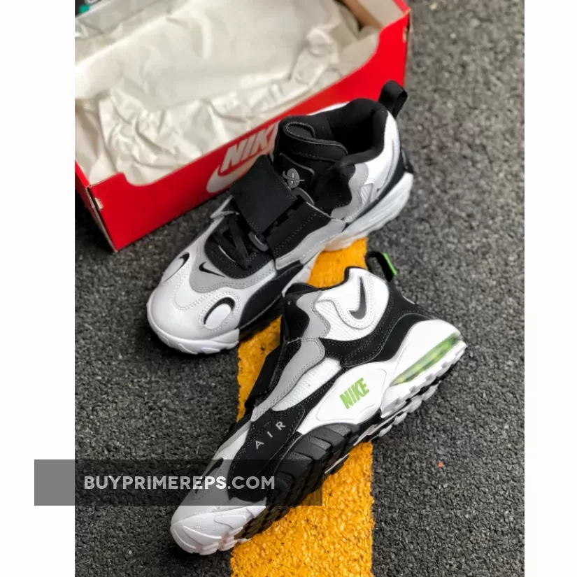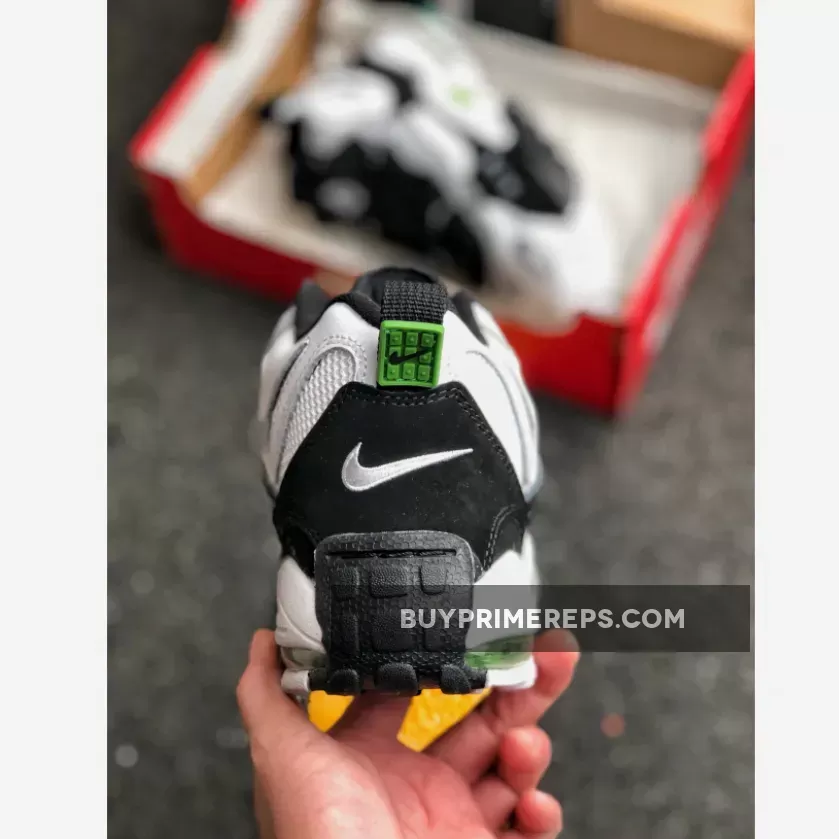 The colorway of the Nike Air Max Speed Turf is a classic combination of white, black, wolf grey, and chlorophyll. The white mesh and leather make up the majority of the upper, giving the shoe a clean and crisp look. The black and grey suede overlays add depth and texture to the design, while the chlorophyll green accents give the shoe a pop of color. This color scheme is reminiscent of the OG “Chlorophyll” colorway of the Air Trainer 1, which is associated with tennis legend John McEnroe.