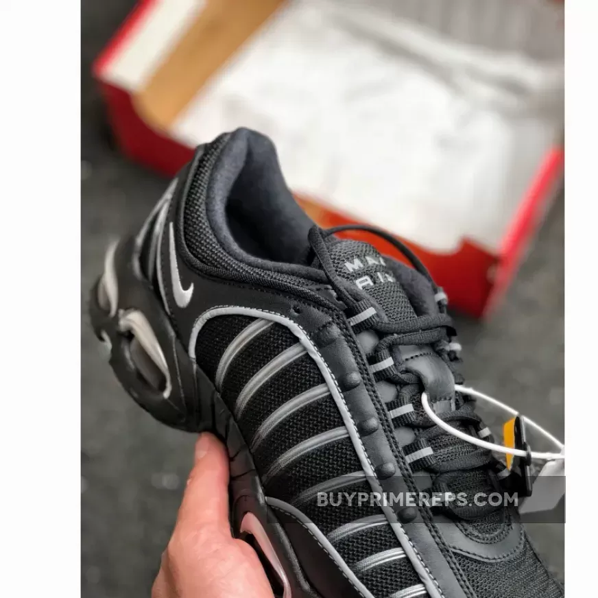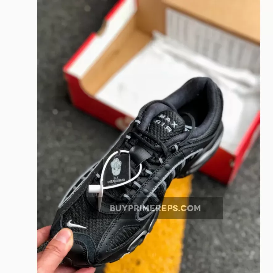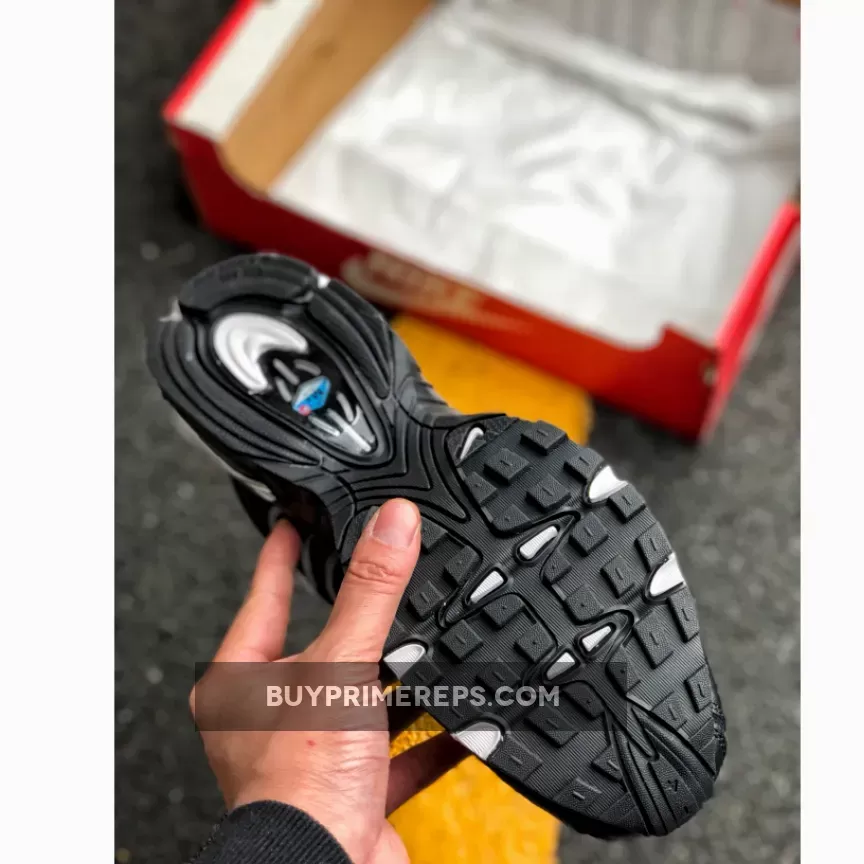 Beneath the surface, the Nike Air Max Tailwind 4 Black Silver boasts a chunky midsole with Air technology, providing excellent cushioning and support. This midsole is also coated in the same black color as the rest of the shoe, creating a cohesive and sleek appearance. To complete the design, era-specific “Max Air” branding can be found on the shoe, adding a nostalgic touch that pays tribute to the shoe’s heritage.