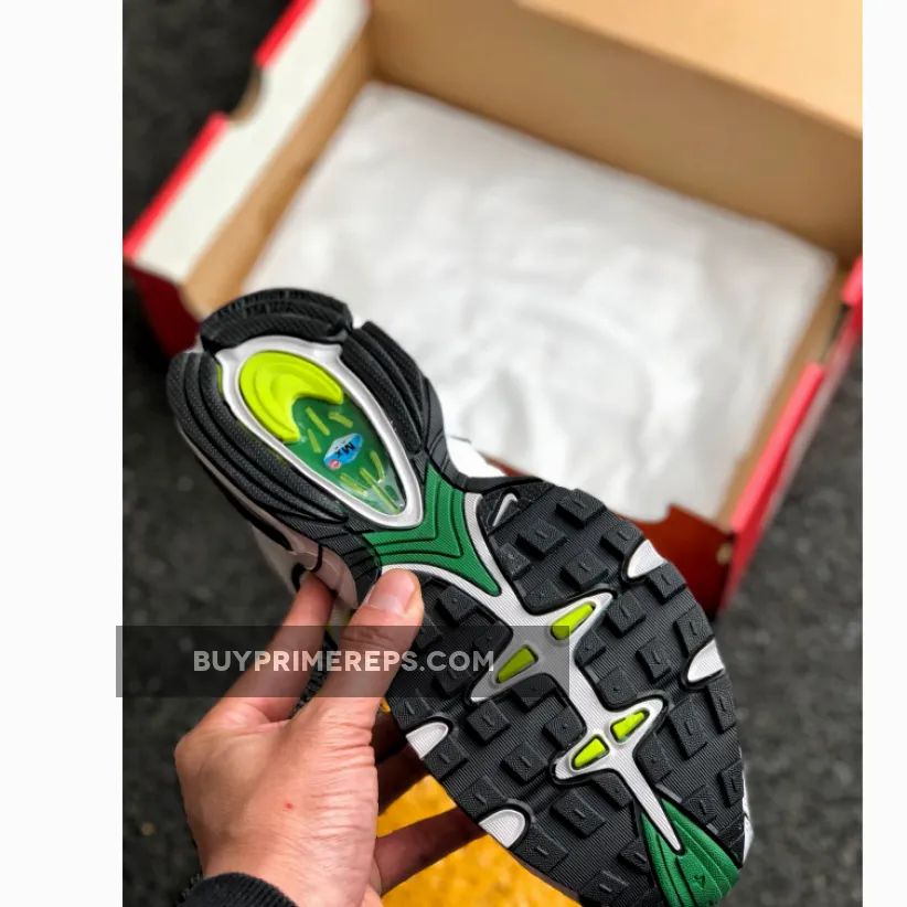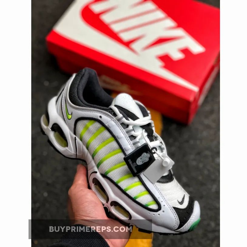 The Air Tailwind 4 White Green features a predominantly white mesh and leather upper, providing a clean and timeless look. However, it is the vibrant “Volt” accents that truly elevate this shoe. Bright green stripes shoot vertically down the lateral and medial side panels, adding a pop of color and giving the shoe a unique character.