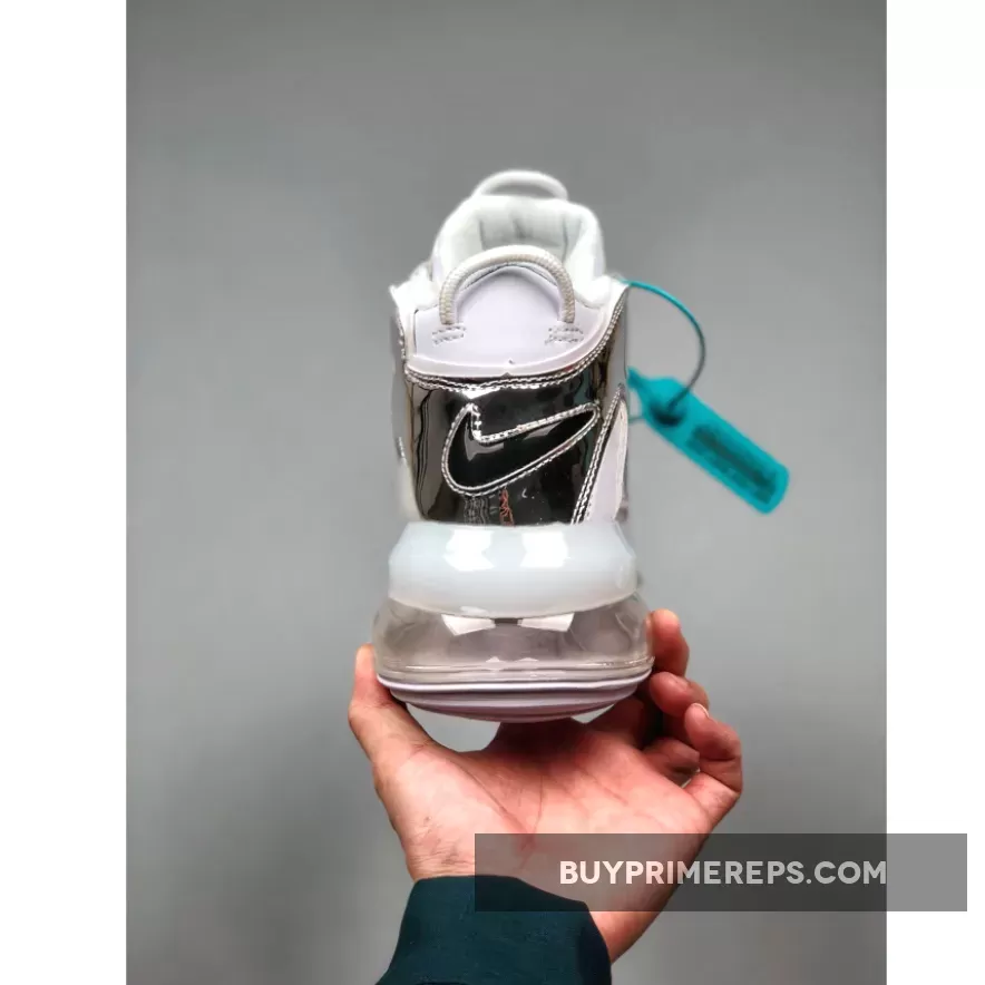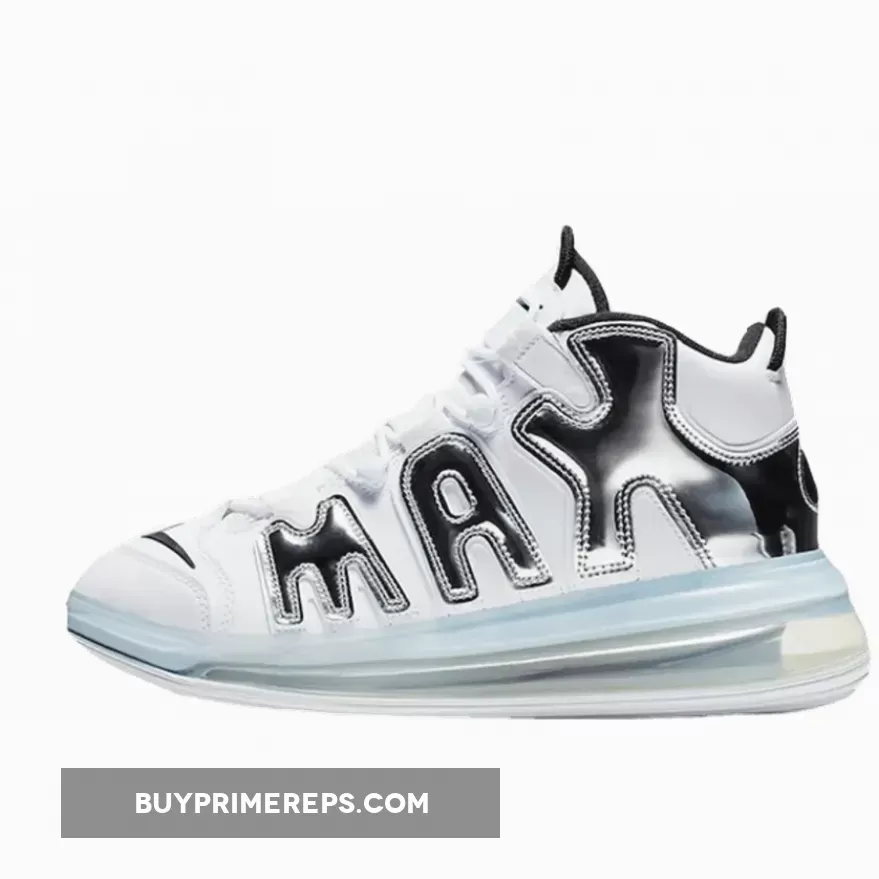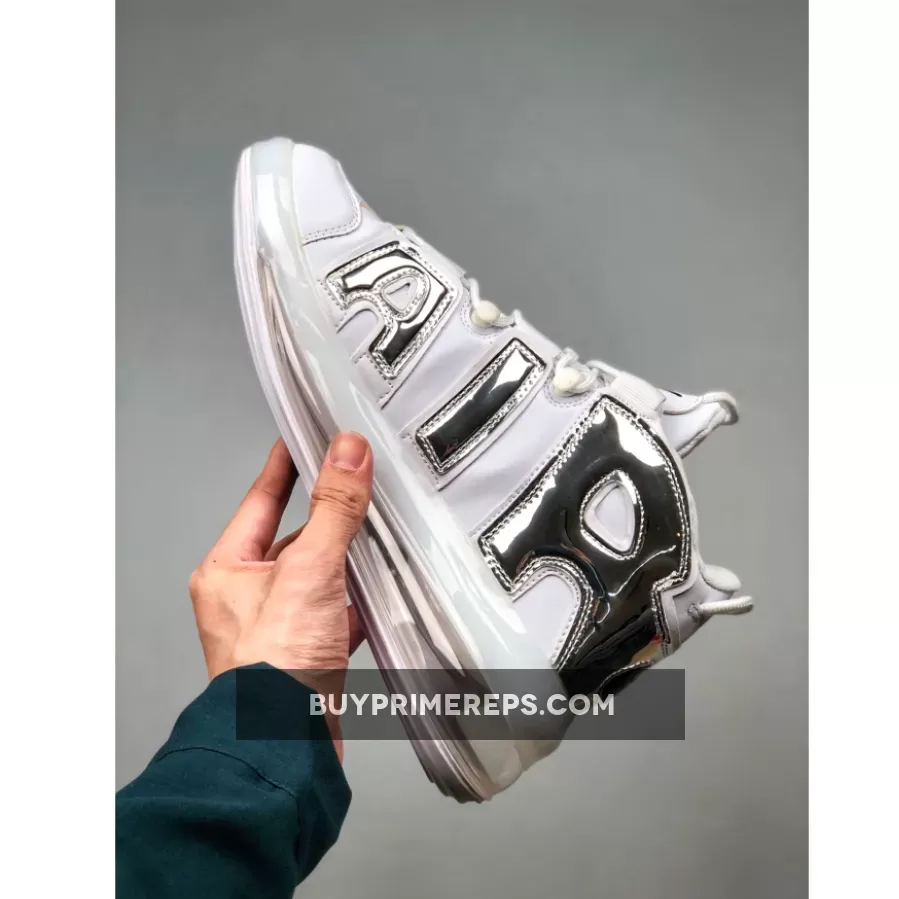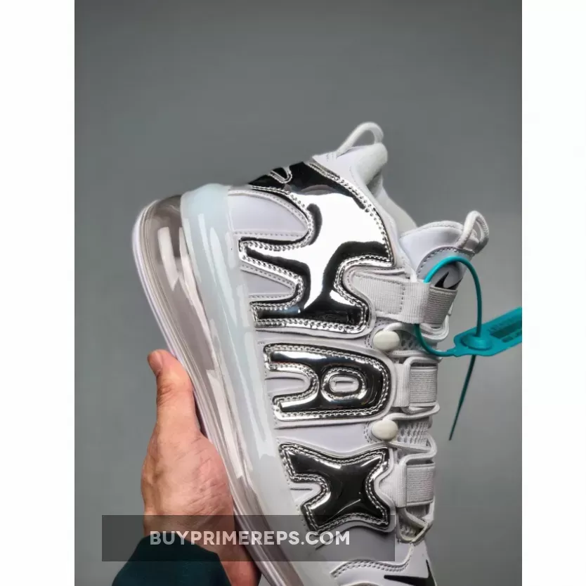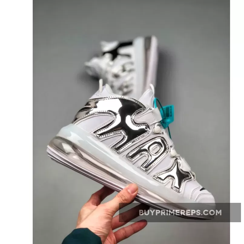 Introducing the Nike Air More Uptempo 720 Chrome, a hybrid sneaker that combines the classic Air More Uptempo with the modern Air Max 720. This unique fusion creates a bold and stylish shoe that is sure to turn heads.