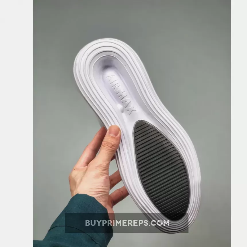 The Air Max 720 unit, known for its chunky and comfortable cushioning, is present in this shoe. Made with over 70% recycled materials, it not only delivers exceptional comfort but also promotes sustainability. The air unit is encased in a translucent blue plastic clip, adding a touch of color and visual interest to the shoe. The grey outsole completes the design, providing traction and durability.