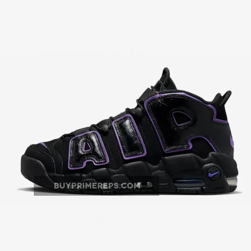 Introducing the Nike Air More Uptempo 96 Action Grape, a limited edition release that combines sleek style with bold colors. This iteration of the iconic Nike Air More Uptempo sneaker showcases a striking color scheme of Black, Action Grape, White, and Metallic Gold, creating a visually appealing design that is sure to turn heads.