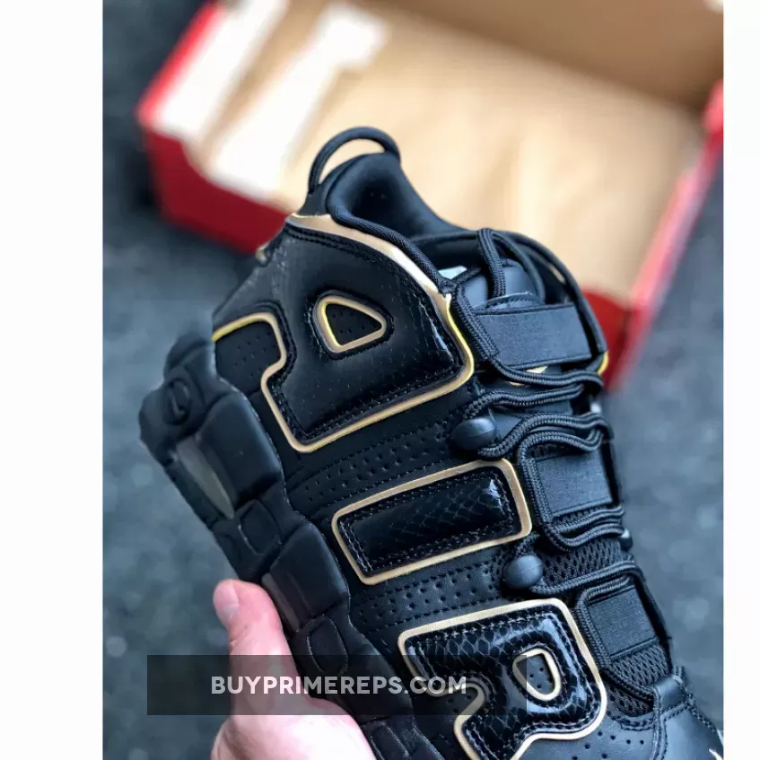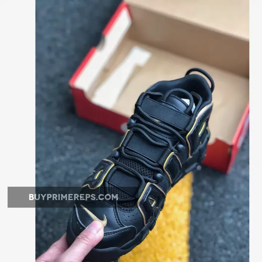 Staying true to the original Air More Uptempo silhouette, this shoe features perforations from heel to toe for breathability and comfort. The chunky midsole not only adds to the overall aesthetic appeal but also provides ample cushioning and support. A gold Air Unit in the midsole adds a pop of color and complements the black and gold upper perfectly.