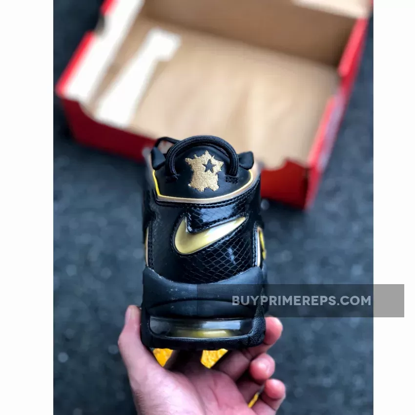 The Nike Air More Uptempo France Black Gold AV3810-001 is a timeless sneaker that pays homage to the iconic 90s design. The combination of the premium materials, sleek colorway, and bold branding makes this shoe a standout choice for sneaker enthusiasts and fashion-forward individuals alike.
