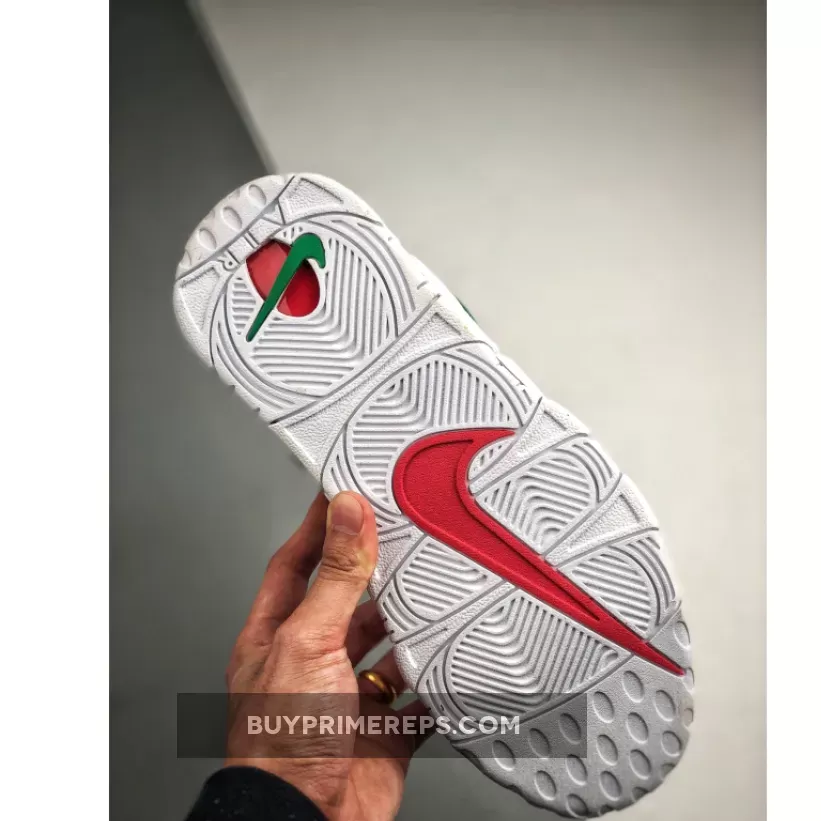 Underneath, the shoe features the classic Air Unit that provides excellent cushioning and impact absorption. This makes the Nike Air More Uptempo Italy Multi not only a stylish choice but also a comfortable one for everyday wear or athletic activities.