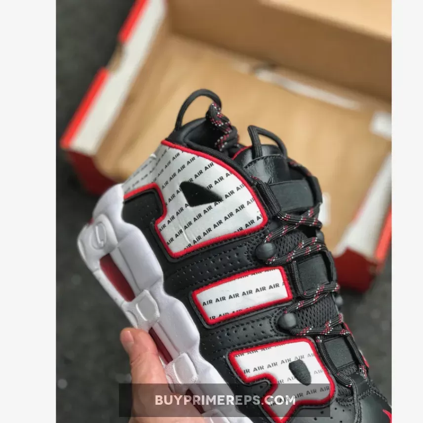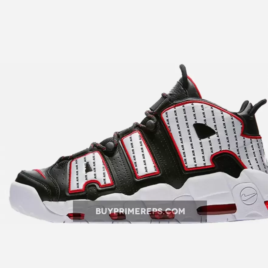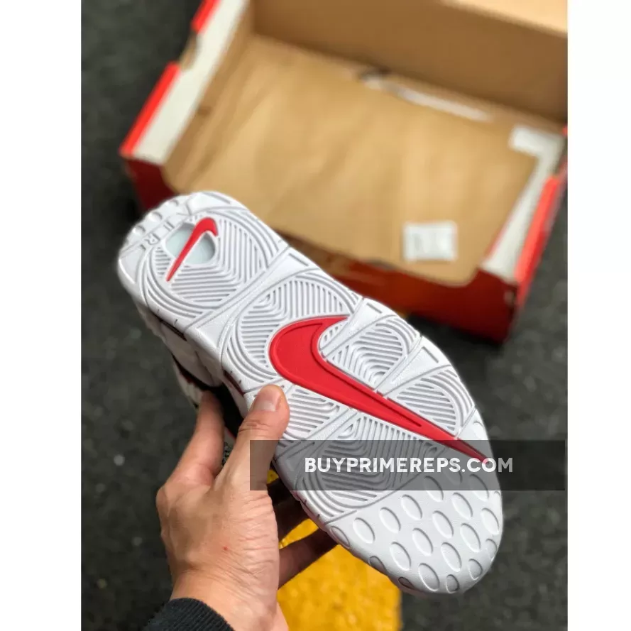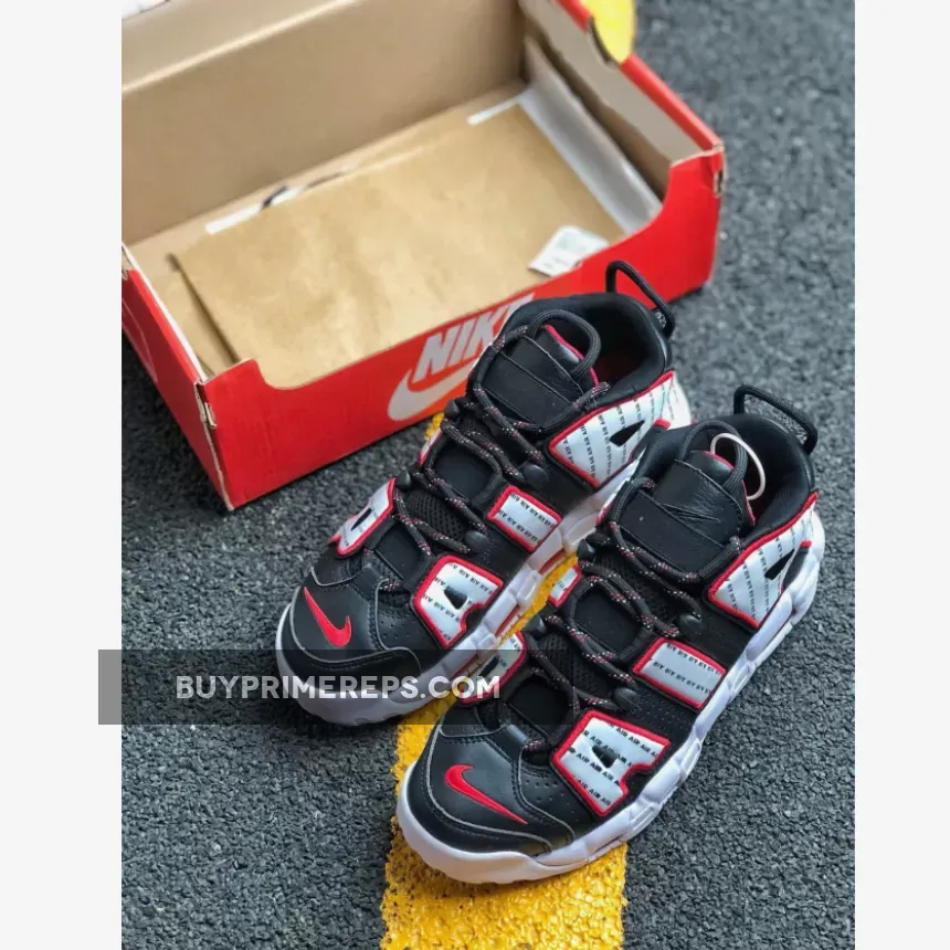 The Air More Uptempo is characterized by its chunky midsole, which not only adds to the shoe’s bold aesthetic but also provides exceptional cushioning and support. The vibrant red sheen on the Air Unit adds a final pop of color, making these sneakers truly stand out from the crowd.