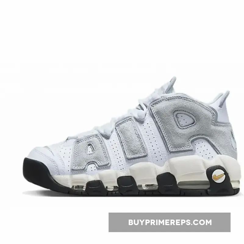 Loving the new Nike Air More Uptempo White Grey Black! 🔥 Quality is top notch 💯. The Grey suede oversized “AIR” branding & tumbled leather upper looks 🔥. Perfect for everyday outfits or a casual stroll. 👟 #NikeAirMoreUptempo #SneakersOfTheDay #NewRelease 🤩