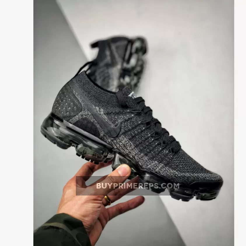 The highlight of the Air VaporMax Flyknit 2 Black is the revolutionary VaporMax Air Unit, which replaces the traditional midsole. This chunky and robust cushioning system propels each stride with weightless energy, delivering a comfortable and responsive feel with every step. Not only does it provide exceptional comfort, but it also gives the shoe a contemporary and futuristic aesthetic.