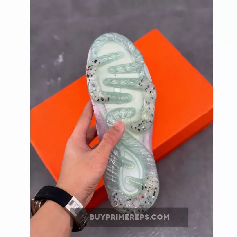 Underneath the feet, the Nike Air Vapormax Flyknit 2021 Pink features reworked cushioning. The cushioning is semi-translucent and slightly thinner than previous models, providing a comfortable and responsive feel with every step. The outsole of the shoe is made with recycled Grind materials, adding to the sustainability aspect of the design.