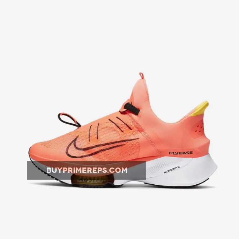 The Nike Air Zoom Tempo NEXT% FlyEase Bright Mango is a highly anticipated release from Nike, offering a stylish and performance-driven sneaker option for athletes and sneaker enthusiasts alike. With its vibrant Mango base upper, black detailing, and yellow heel tabs, this shoe is sure to turn heads wherever you go.