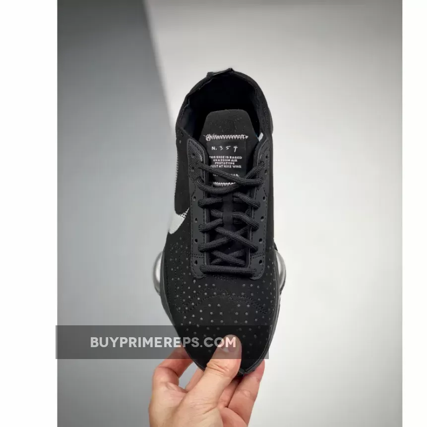 The standout feature of the Air Zoom Type is the double stacked Nike Air midsole unit, reminiscent of the popular Sacai collaboration. The midsole is coated in a clean white hue, providing a striking contrast to the black upper. This stacked design not only adds visual interest but also offers enhanced cushioning and comfort for all-day wear.